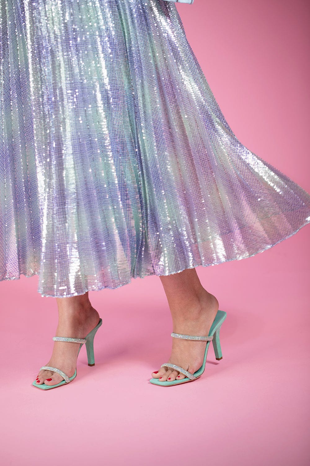 Paris Texas holly linda mule in aquamarine.