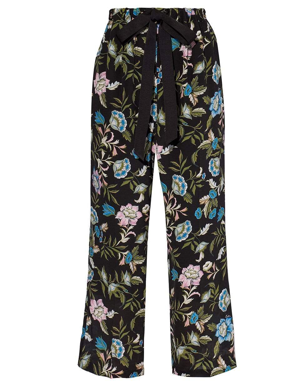 The Erdem Horace trouser is a pyjama-style trousers cut for a loose, straight fit and feature a grosgrain bow-fastening belt at the waist and hidden pockets. They are half lined in black silk crepe de chine. These trousers have a wide leg, a relaxed design and a high waist. They feature hidden pockets at the sides and are secured with an elastic waist and a bow tie at front. They graze the ankle.