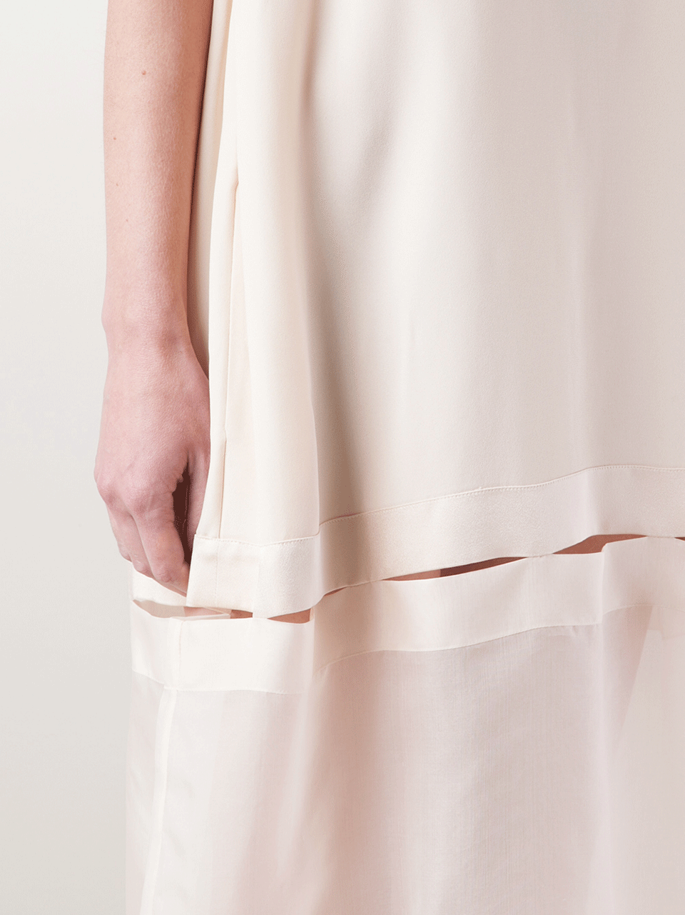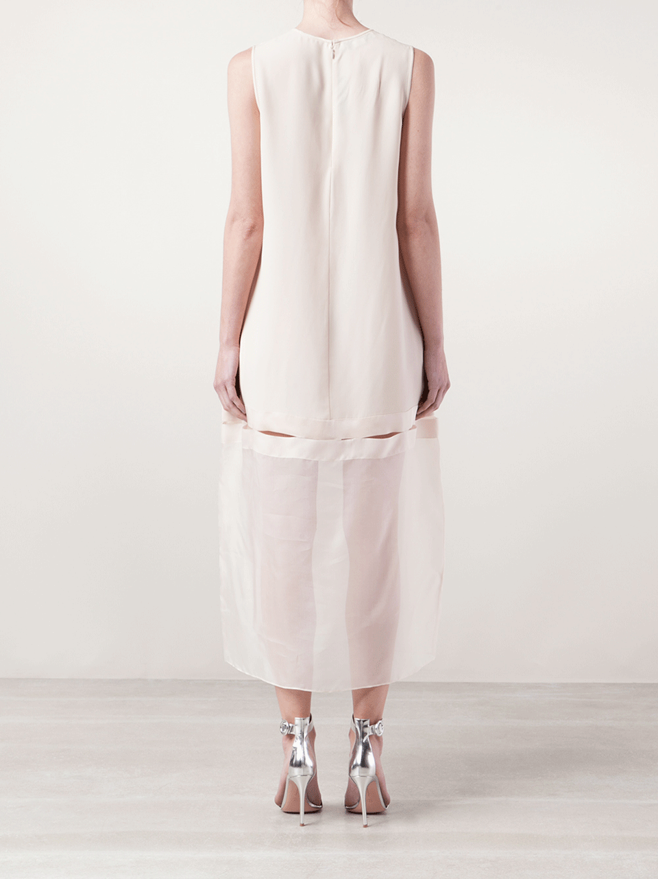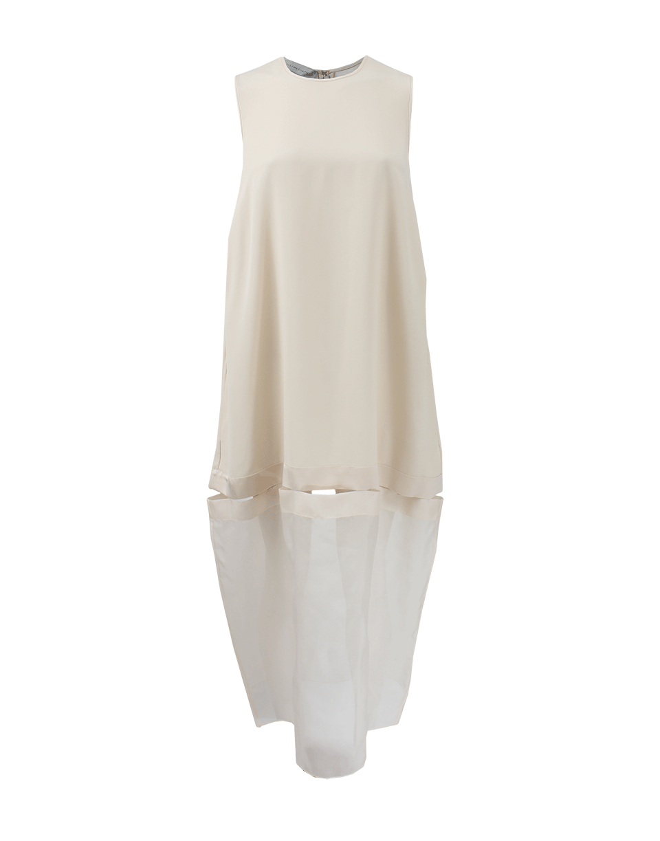 Cutout Hem With Sheer Lining, Back Zip Closure, And Two Front Pockets