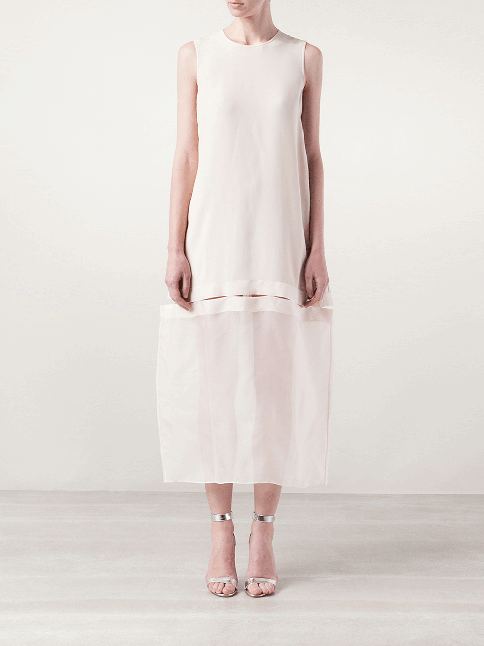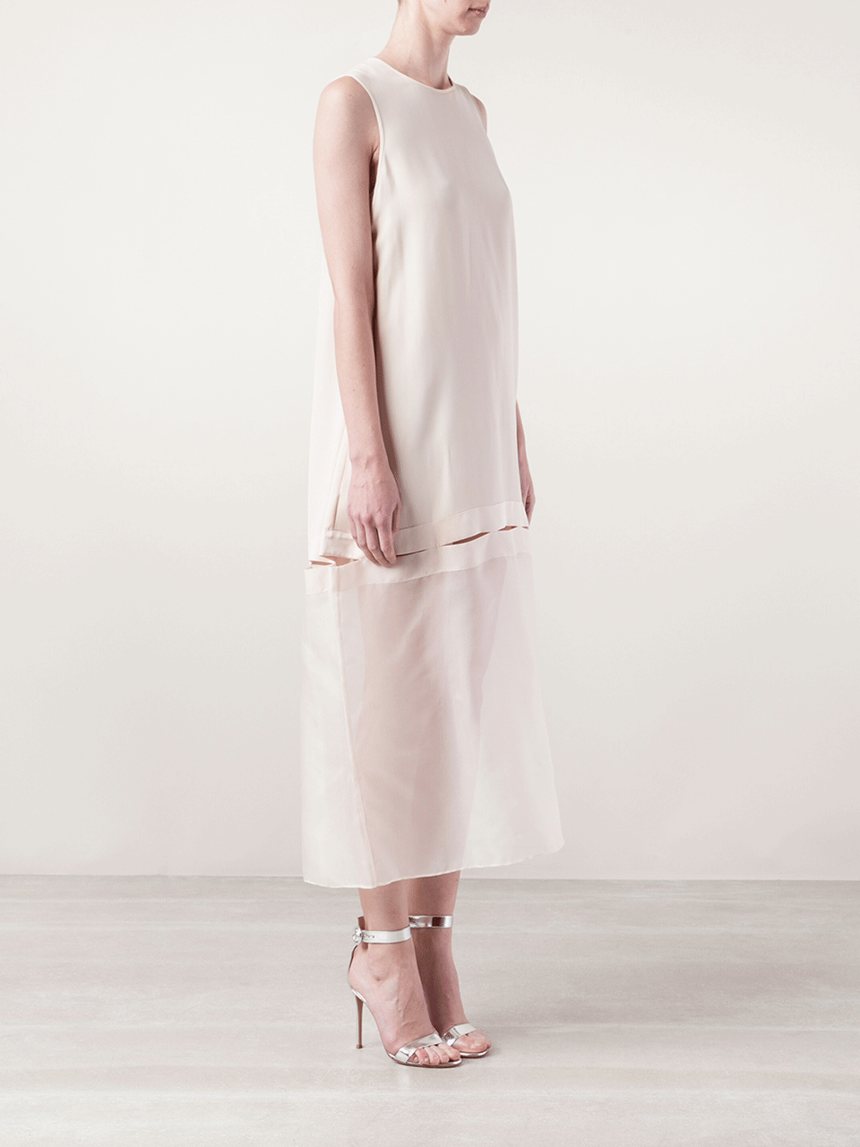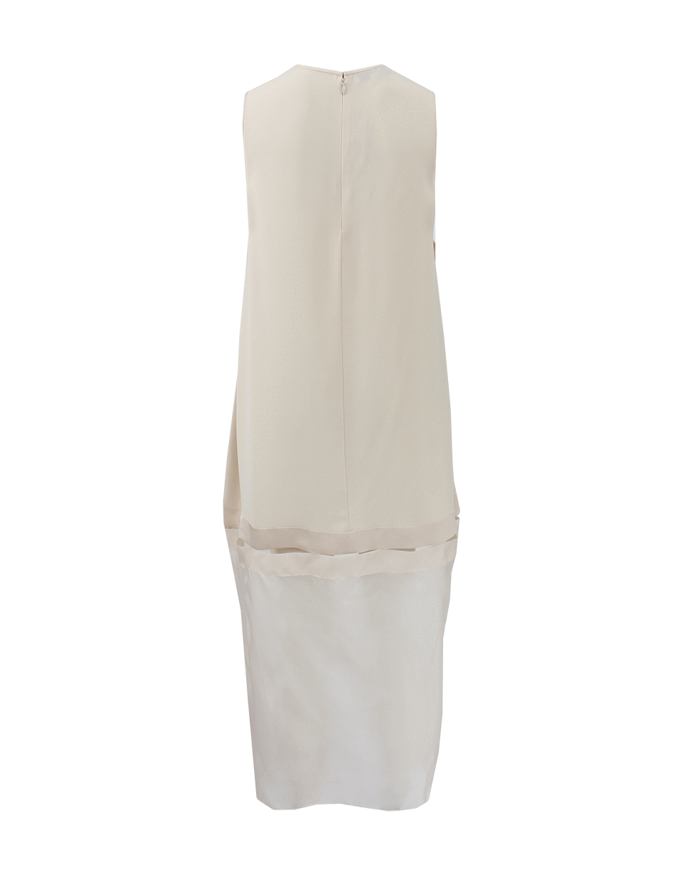 Cutout Hem With Sheer Lining, Back Zip Closure, And Two Front Pockets