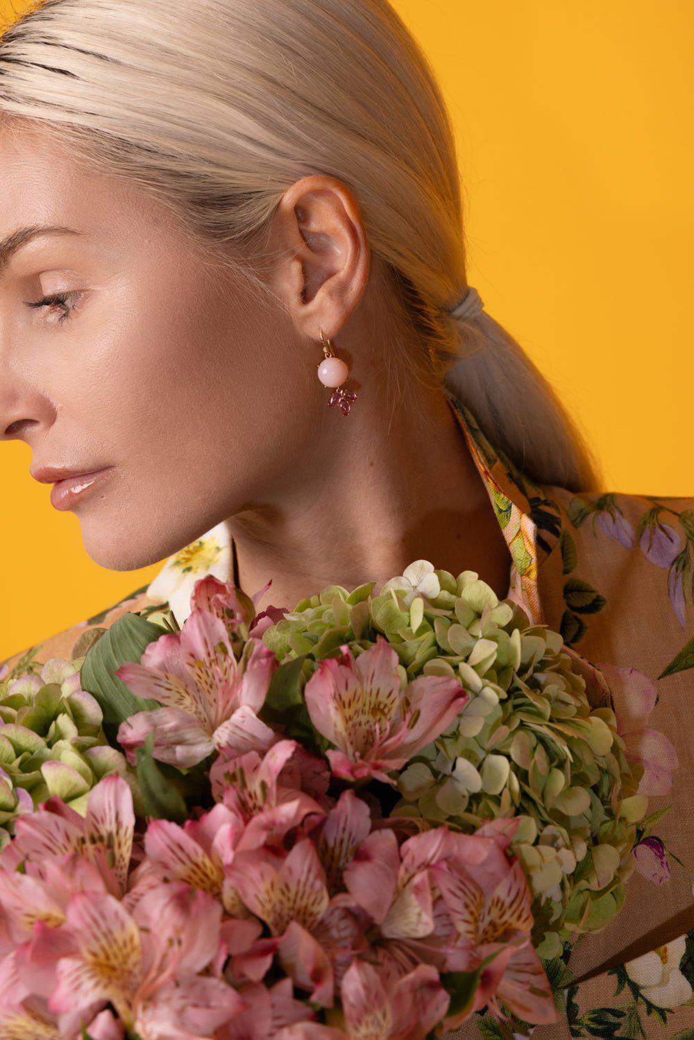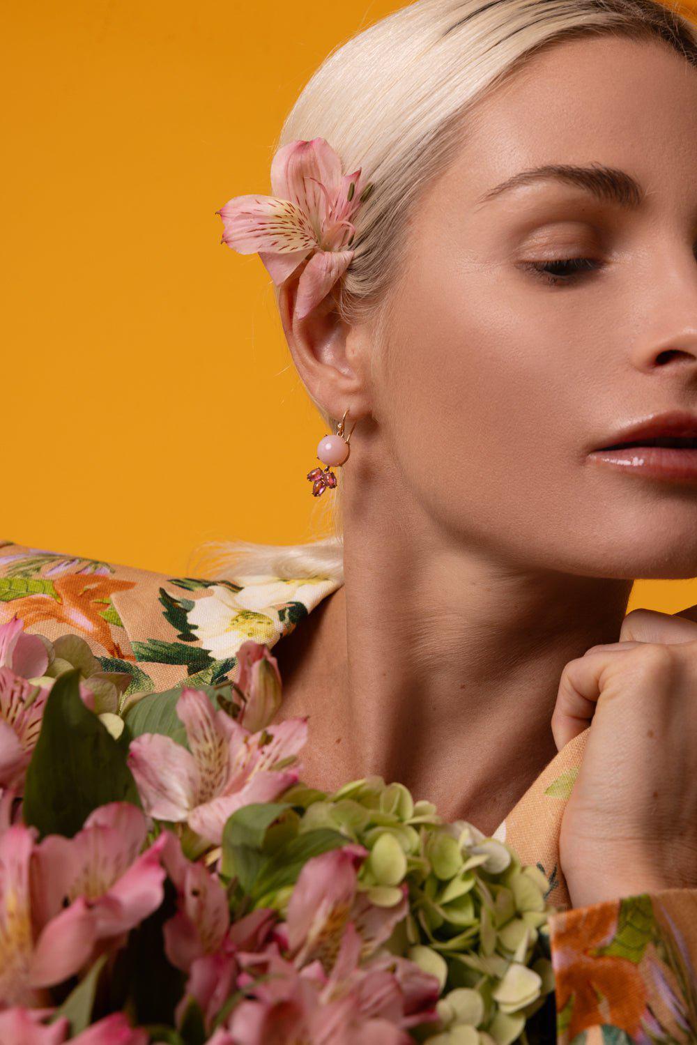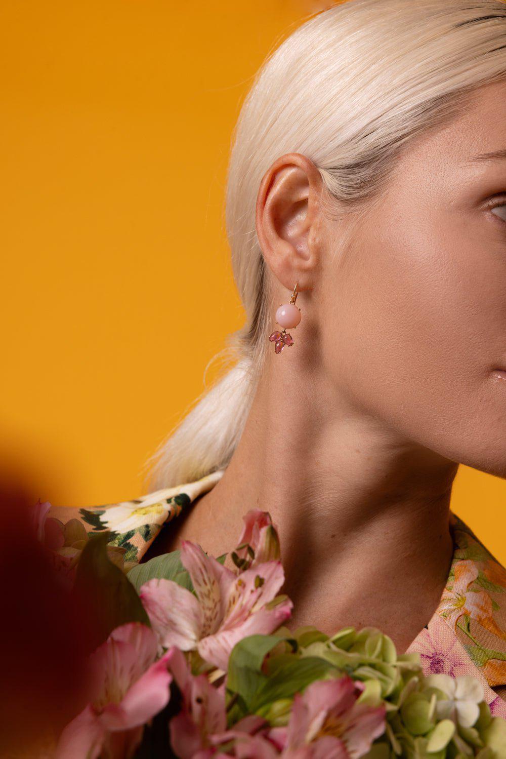 Irene Neuwirth classic cabochon pink opal earrings in rose gold.