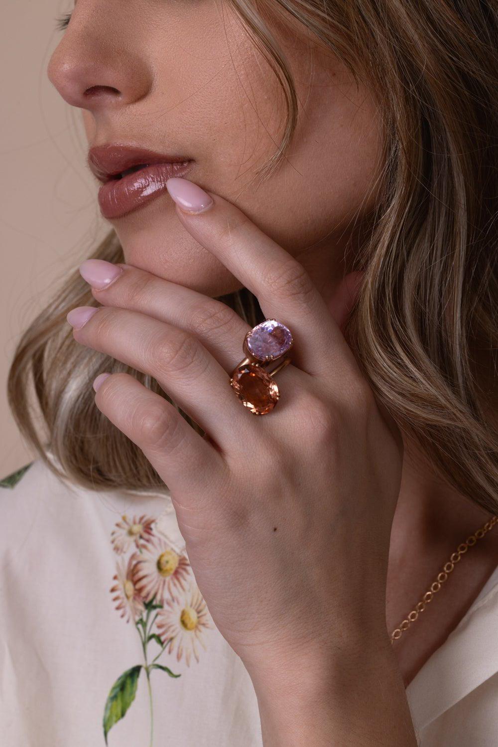 Irene Neuwirth gemmy gem pink tourmaline prong ring in rose gold.