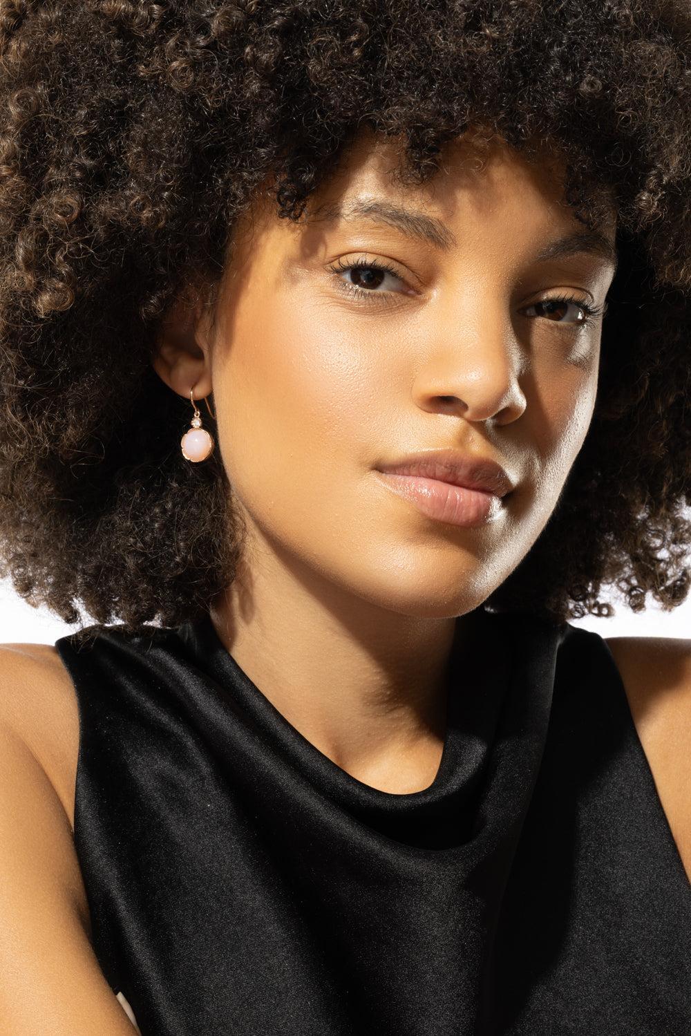 Irene Neuwirth pink opal diamond drop earrings in rose gold.