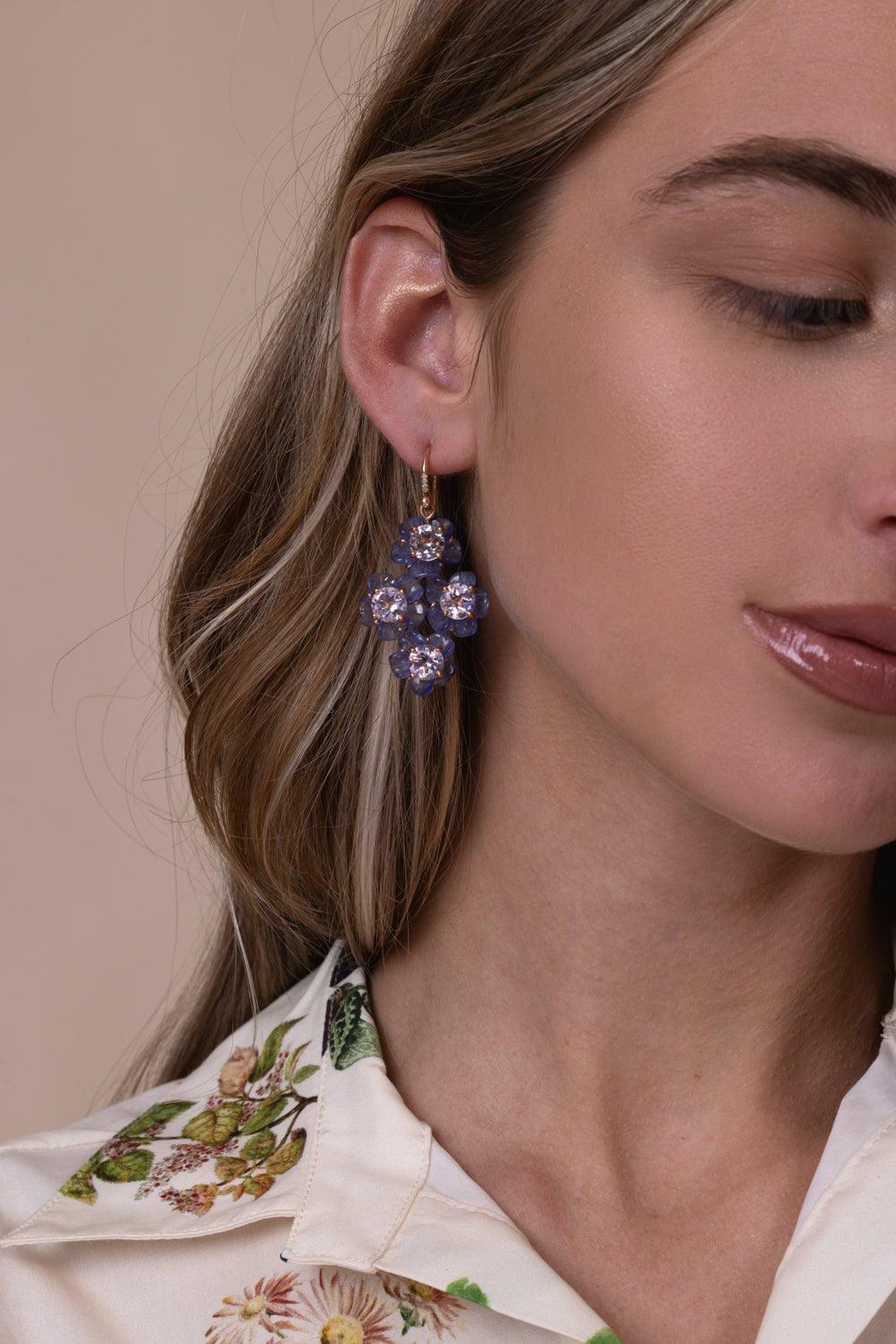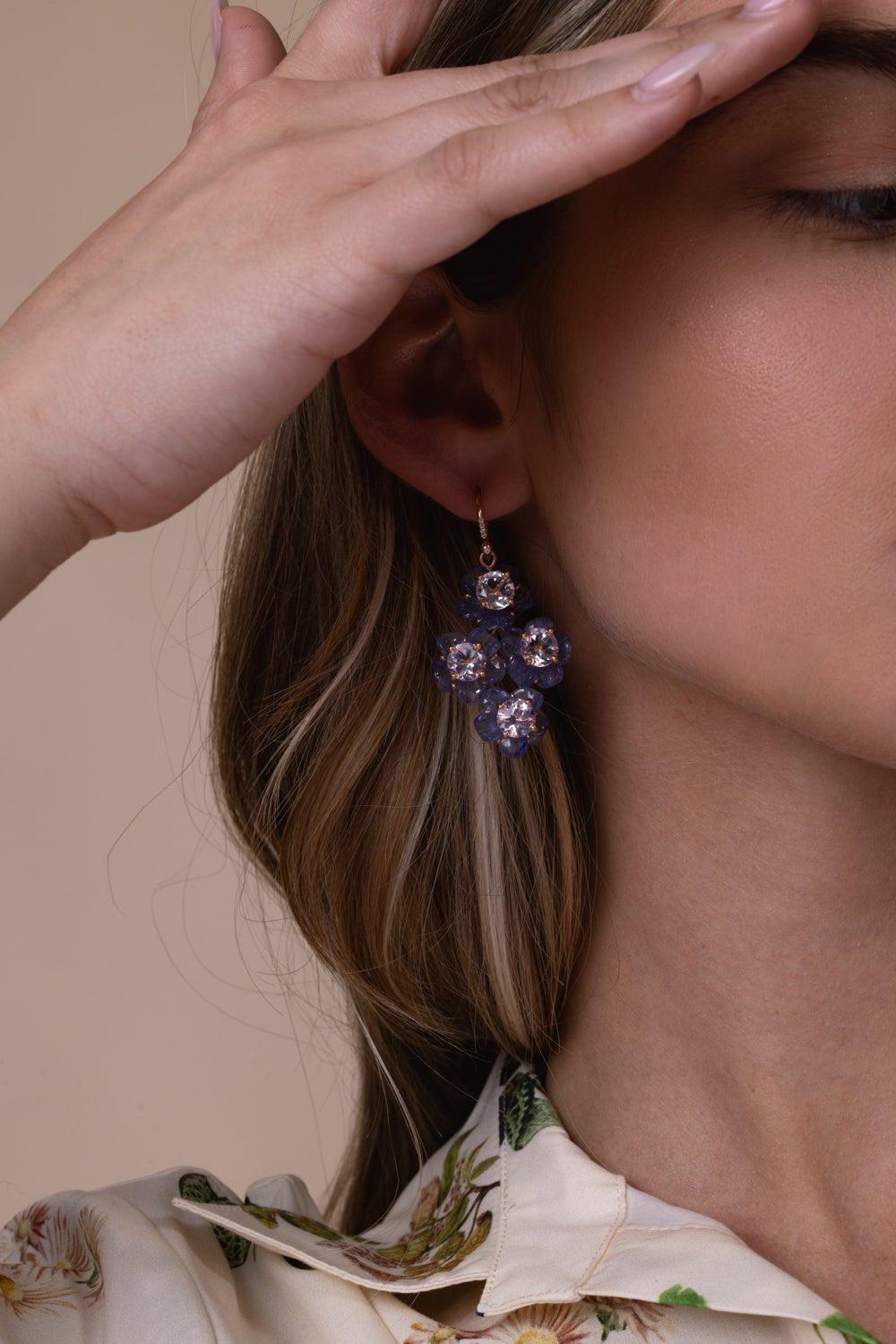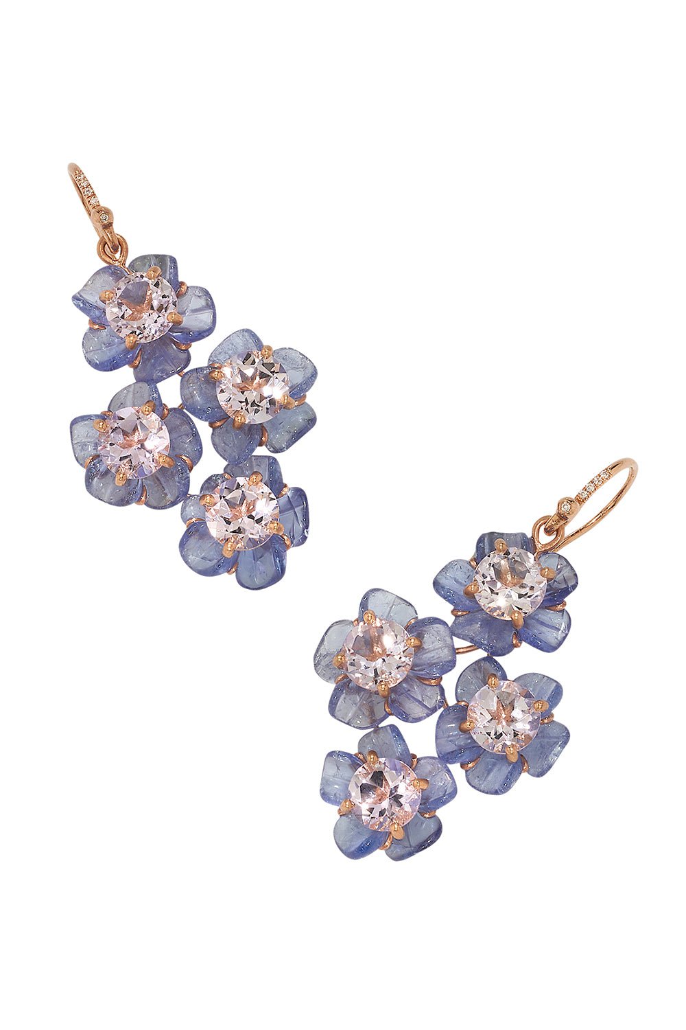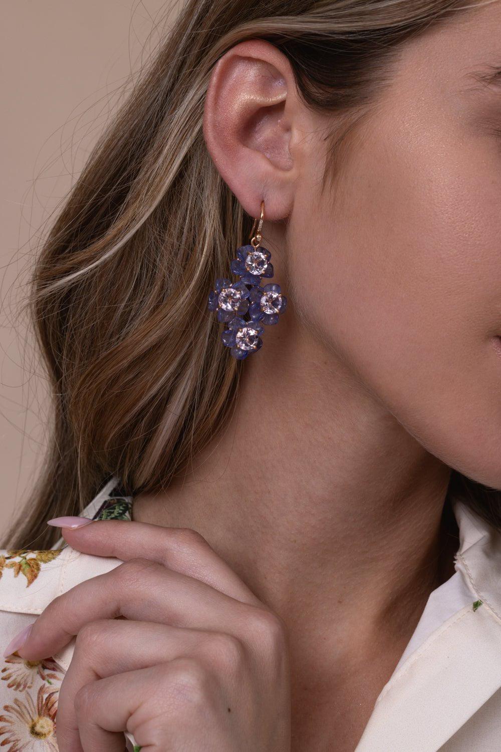 Irene Neuwirth tropical flower tanzanite drop earrings in rose gold.