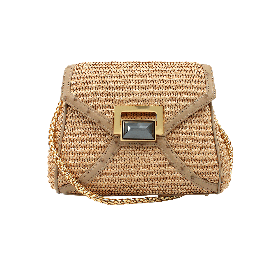 Twist Front Closure And Ostrich Leather Bottom With Four Gold Feet