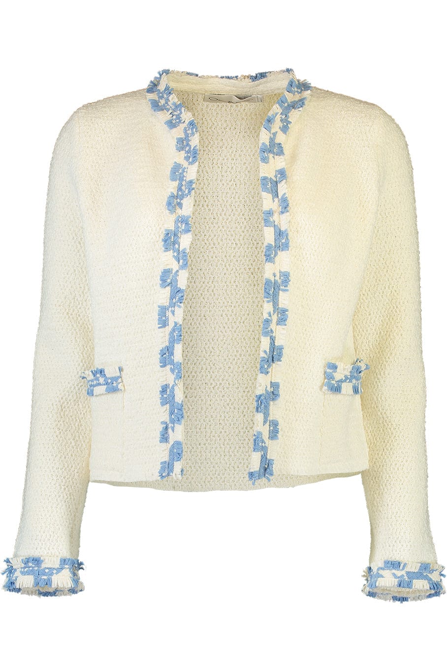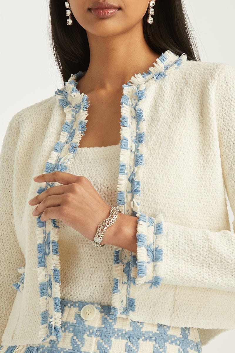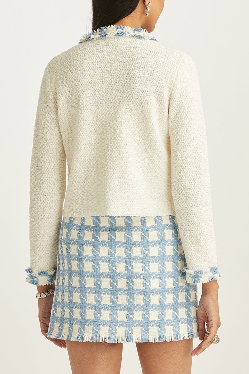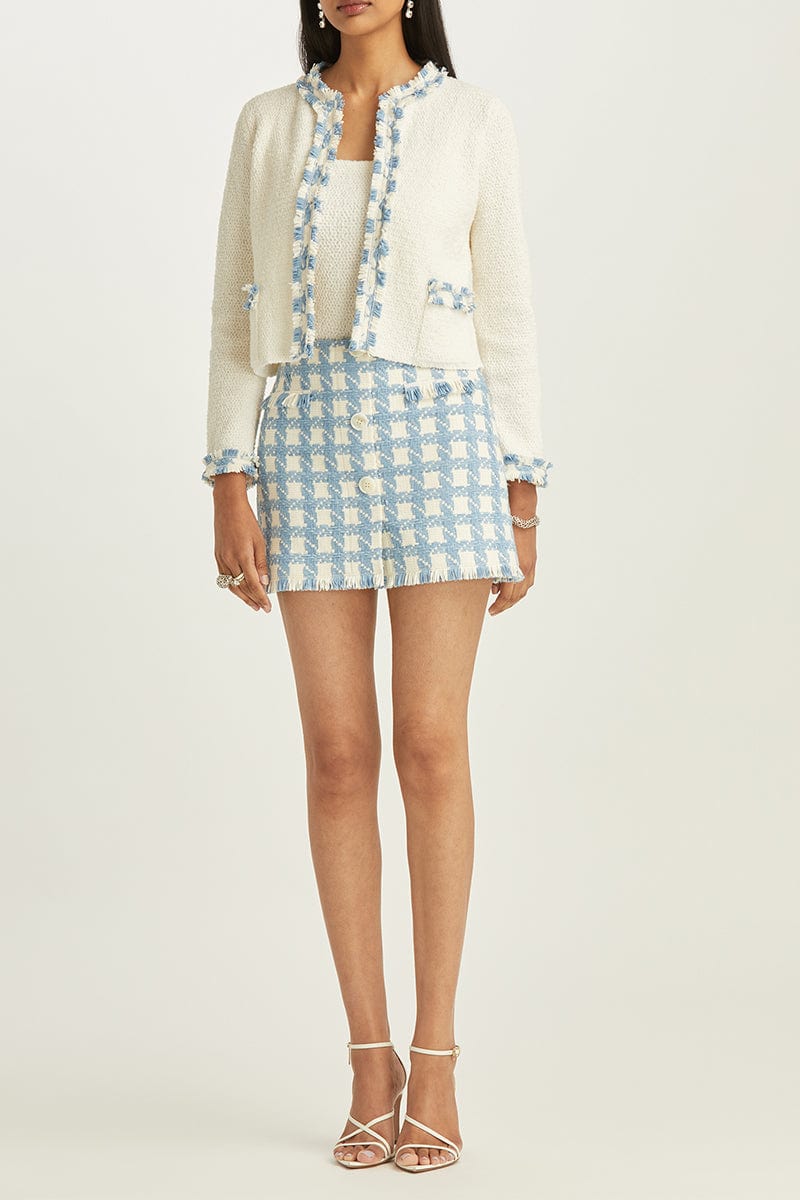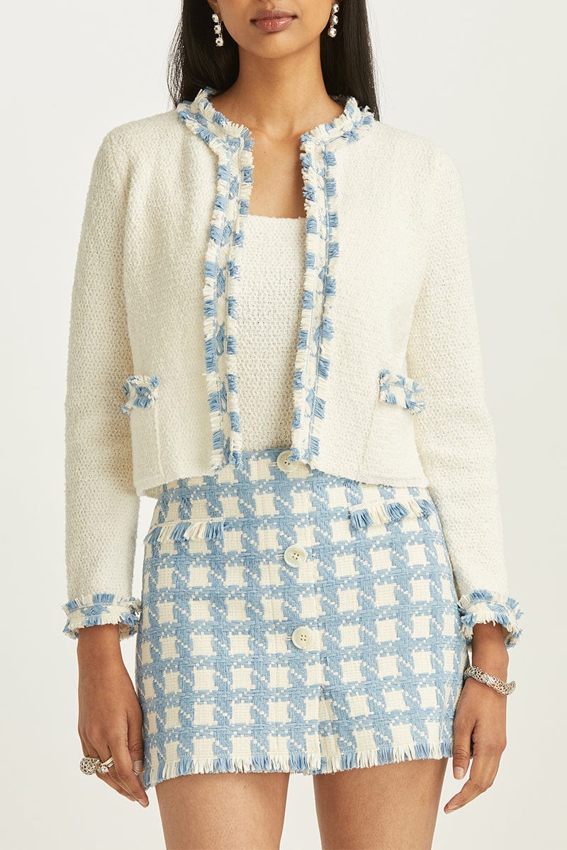 Oscar De La Renta jacket with gingham tweed fringe in ivory.