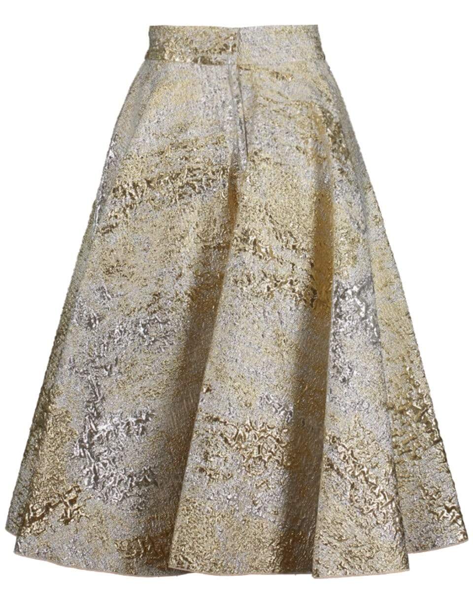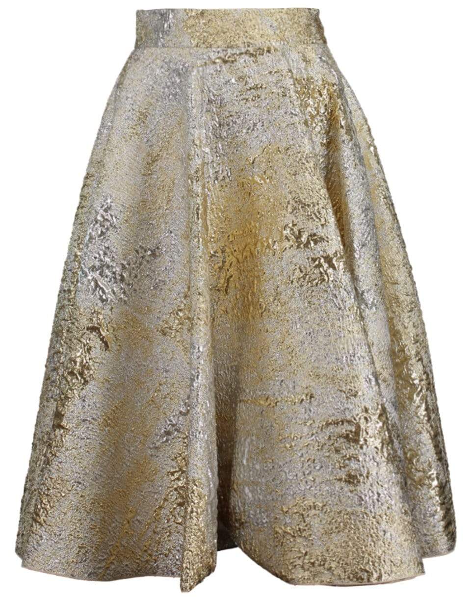 Dolce & Gabbana gold jacquard full skirt with a high waist, concealed button/zip closures at back, and a mid-length.