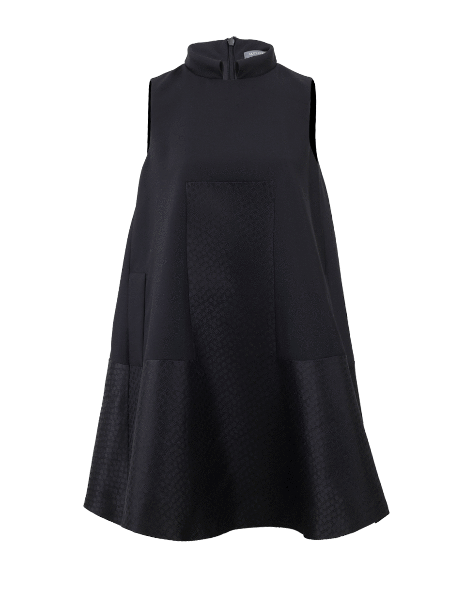 Back Zip Closure With Loose-Fitting, Trapeze Silhouette And Square Jacquard Front Panel And Hemline