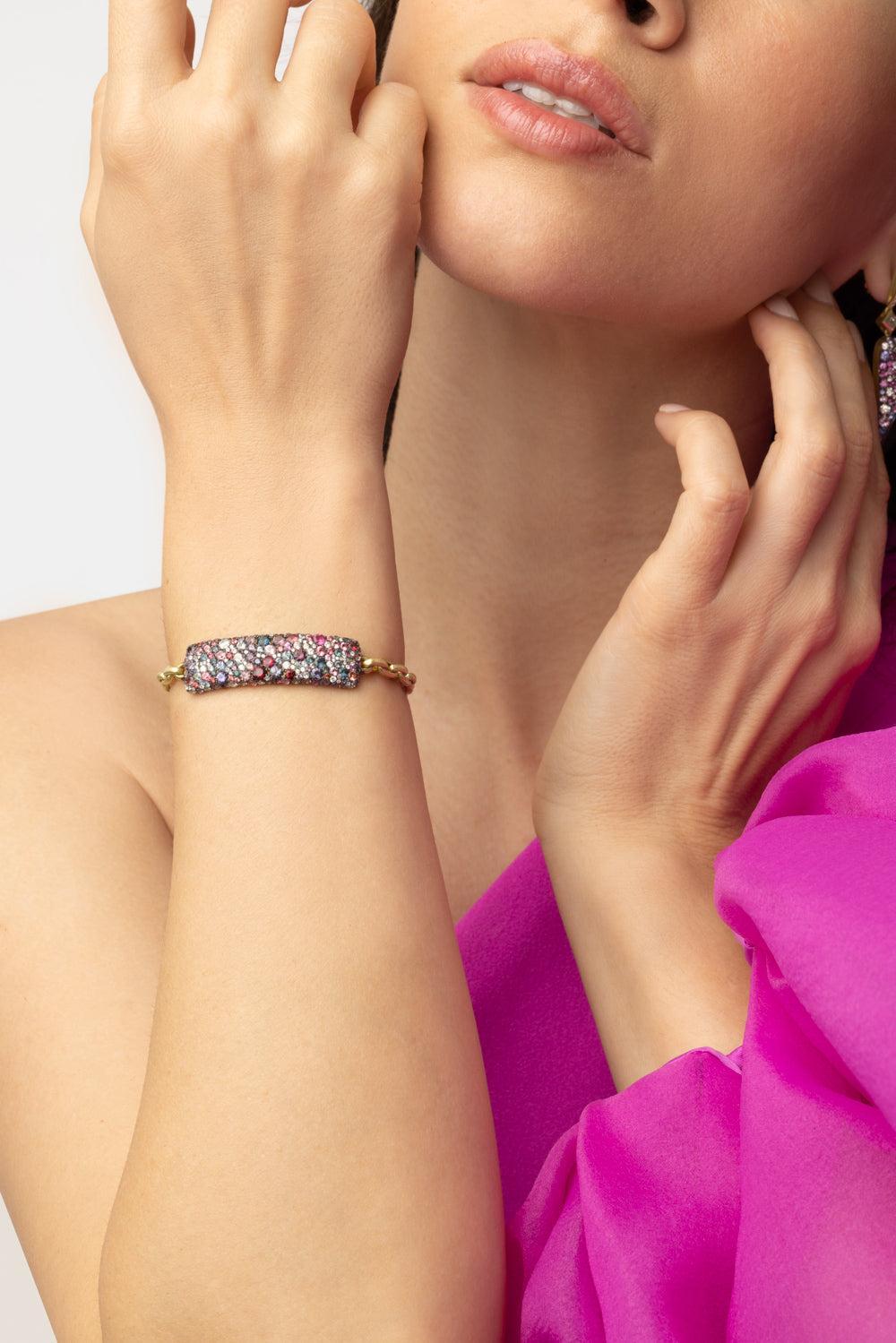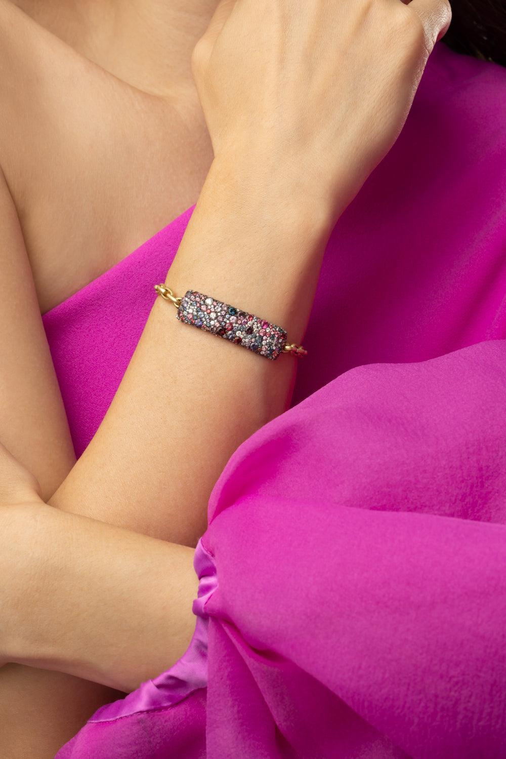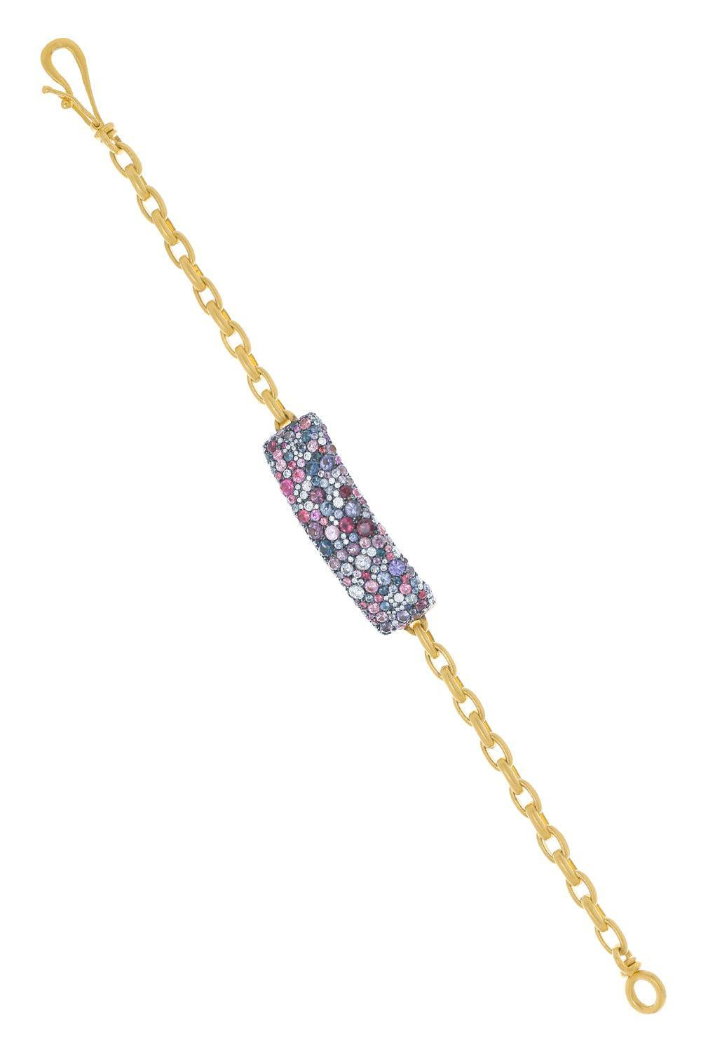 Jared Lehr spinel diamond bracelet in yellow gold.