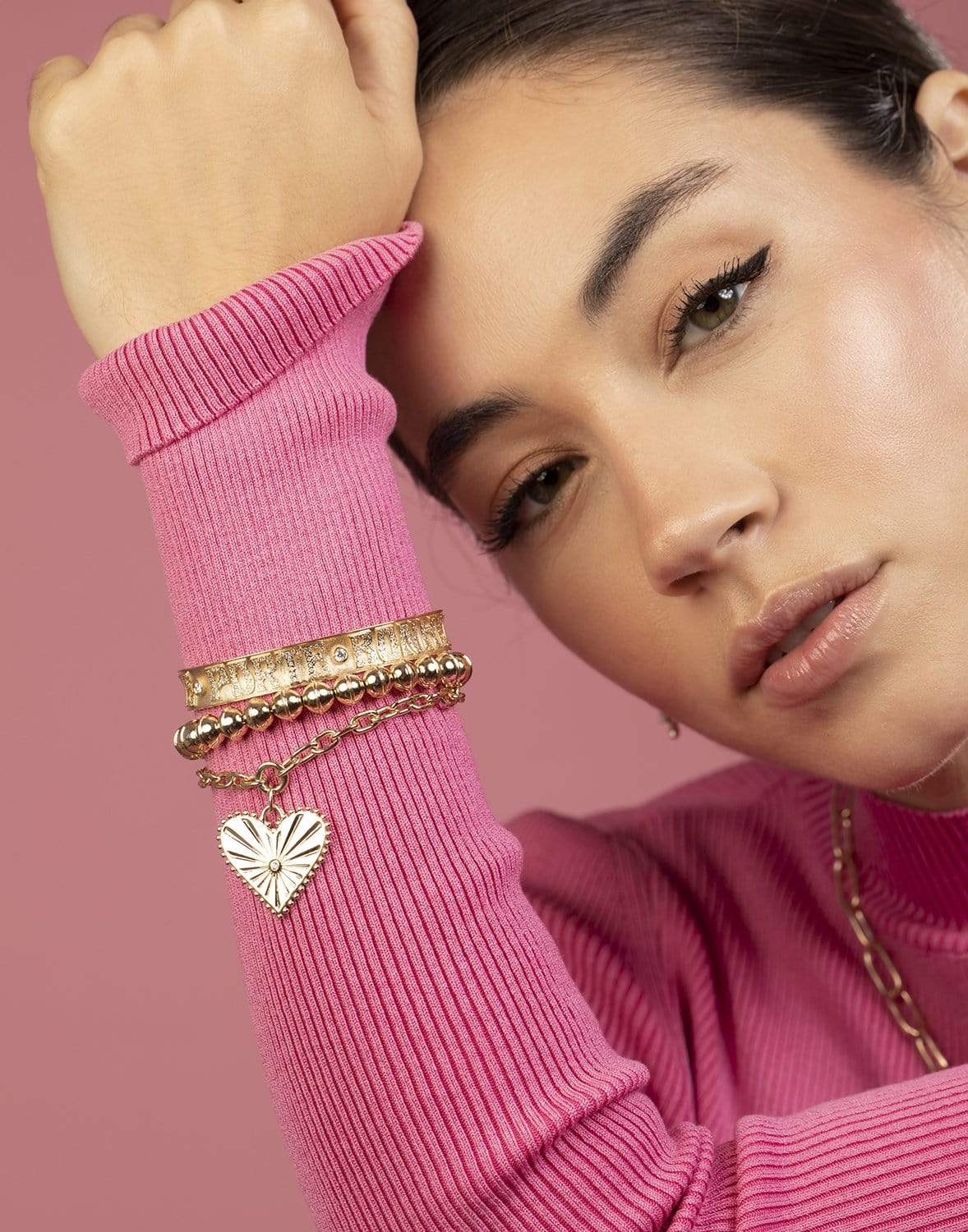 "Je Porte Bonheur", French for "I bring good luck", our iconic Marlo Laz Cuff serves as a wearable symbol of good fortune. For best results, stack them up and mix cuffs with different widths.