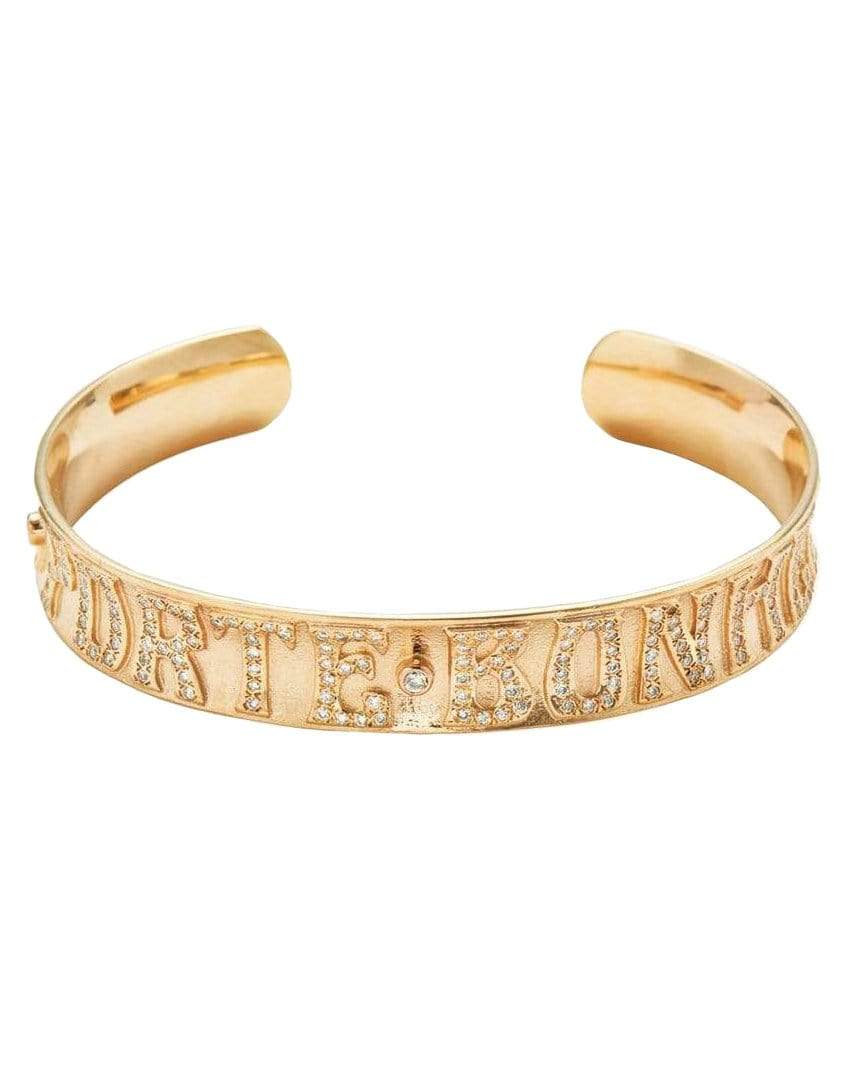 Marlo Laz je porte bonheur diamond cuff. Luck is the best form of currency! Inscribed with