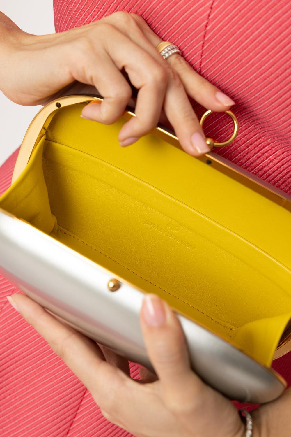 This unique Jeffrey Levinson X Hope for Depression bag is called, “Soluna,” a name that combines Sol (Spanish for Sun) and Luna (Spanish for Moon). It is a reflection of the poetry of the bag, “Moonlight is the presence of the sun even in the darkness.” The outside of Soluna is the moon, which reflects the brilliance of the yellow sun to symbolize the full, uplifting potential of HDRF’s mission and work. In the world of fashion and philanthropy, there are two strong components: passion and commitment. Jeffrey Levinson and Audrey Gruss are a natural pairing. Combining Jeffrey Levinson’s strong sense of beauty—which reflects character, attitude, and accomplishment—with Audrey Gruss’s Olympian determination to make a difference in the world of mental wellness and depression research results in a powerful partnership that bridges aesthetic excellence with meaningful impact. We are thrilled to present the limited-edition Soluna handbag—a collaboration between Jeffrey Levinson, Hope for Depression, and Marissa Collections.