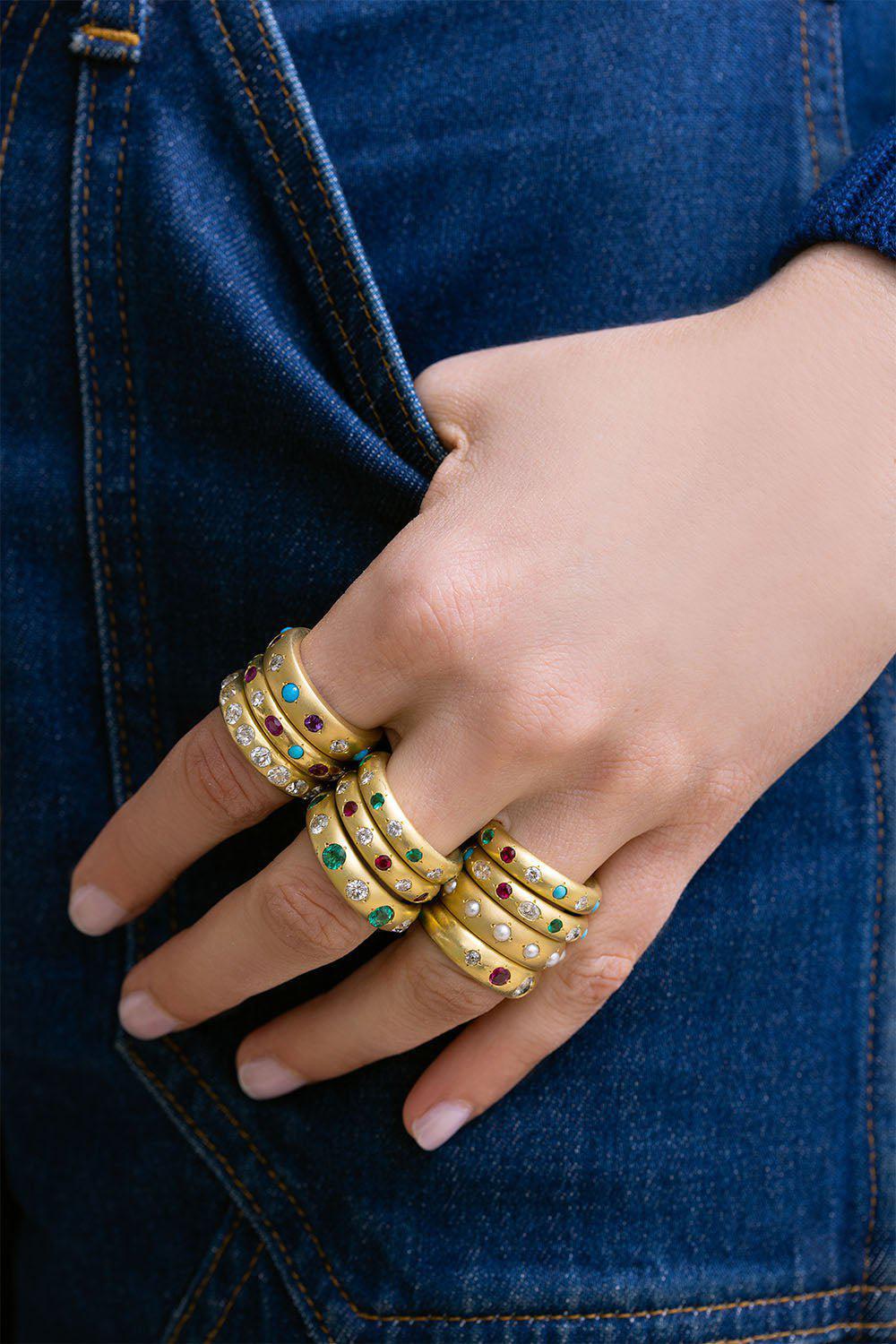 Jenna Blake multi stone gypsy ring in yellow gold.