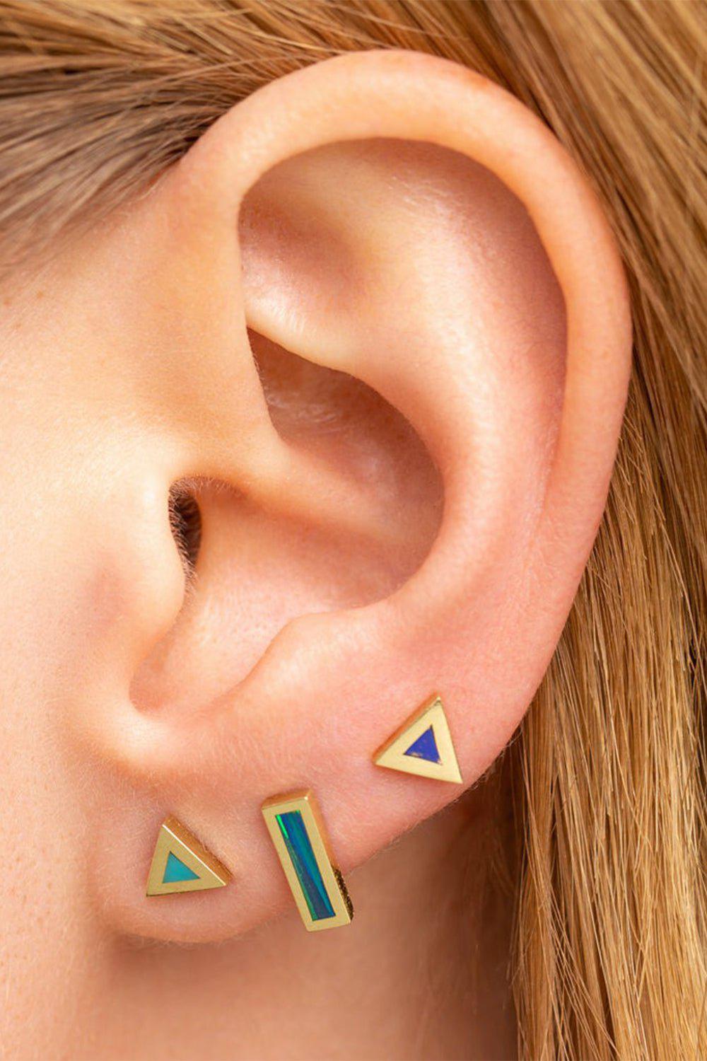 Handcrafted in 18-karat yellow gold, these short bar studs are set with opal inlay to add a subtle pop of color to your everyday. Wear yours alone or stacked with others from the collection.