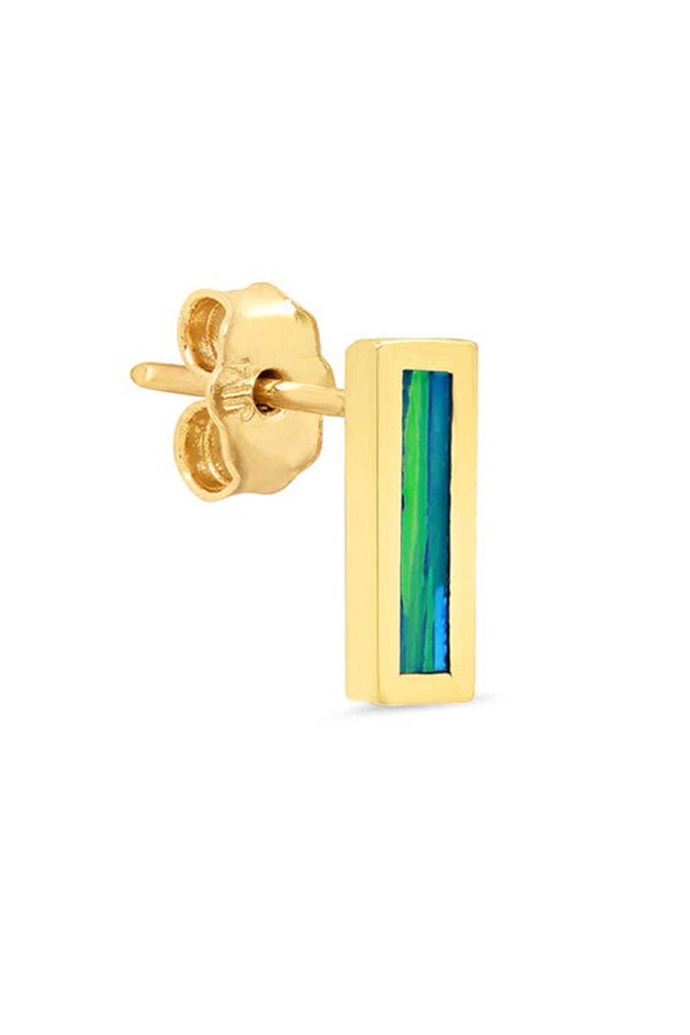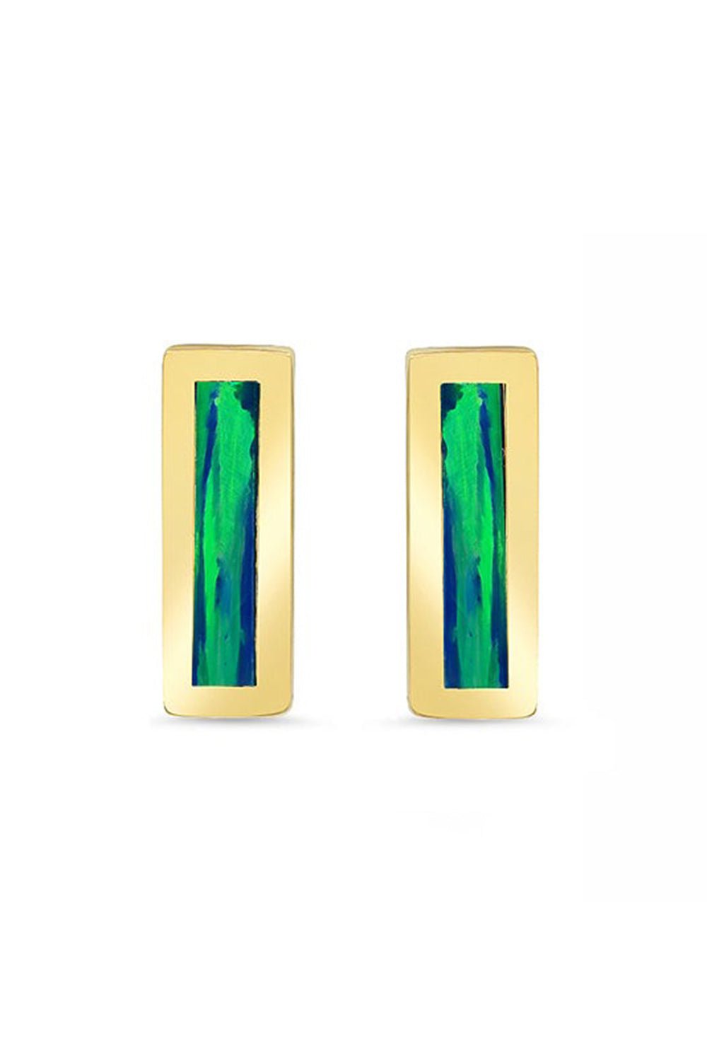 Jennifer Meyer opal inlay bar stud earrings in yellow gold.