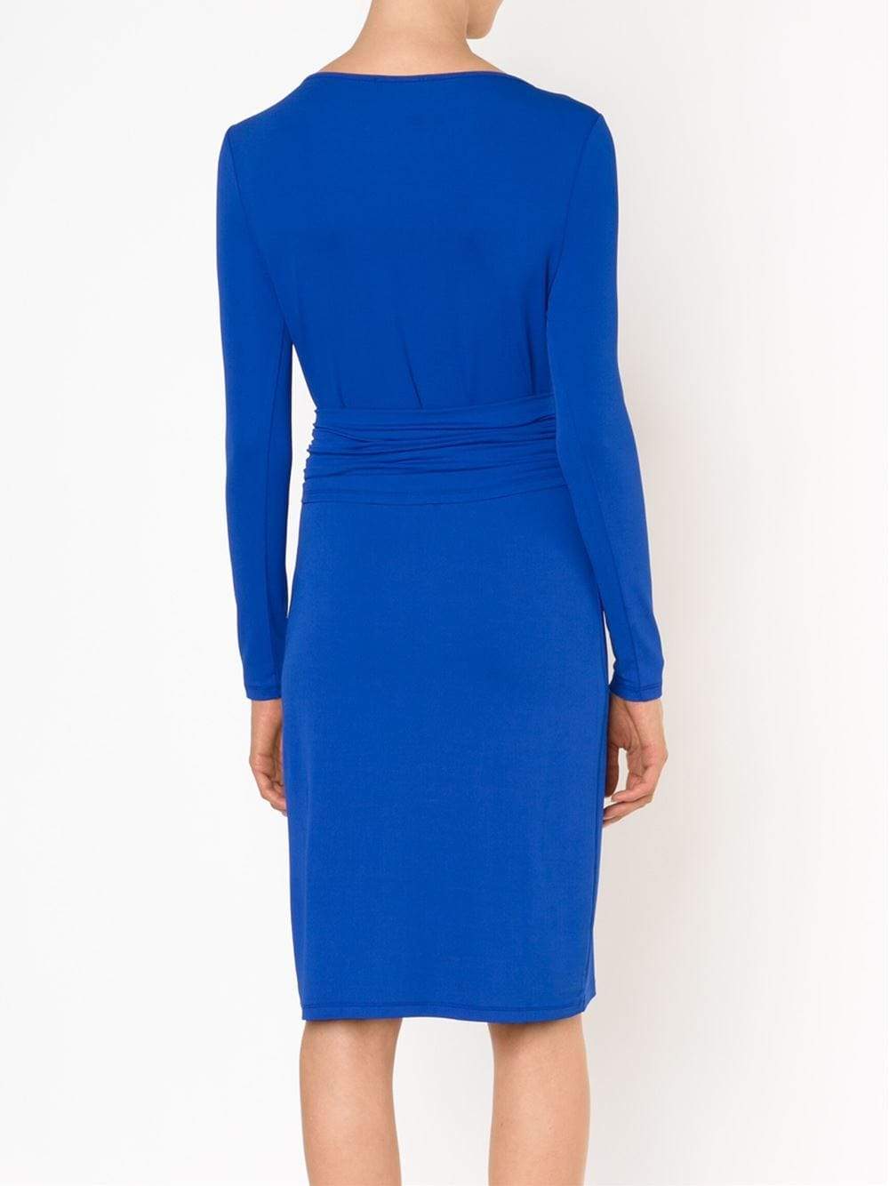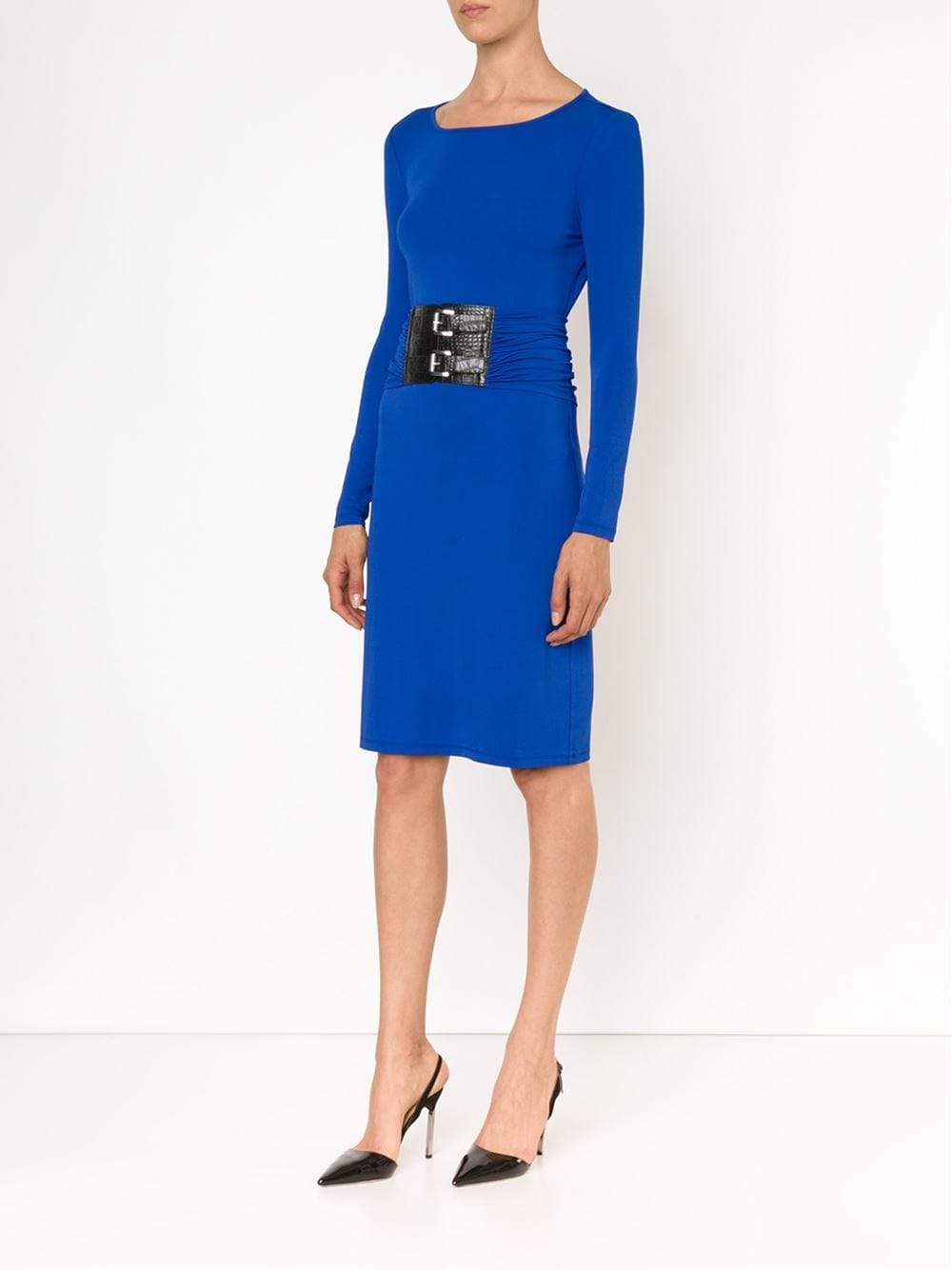Jewel Neckline With Long Sleeves, Slim-Fitting Silhouette, And Knee-Length Cut