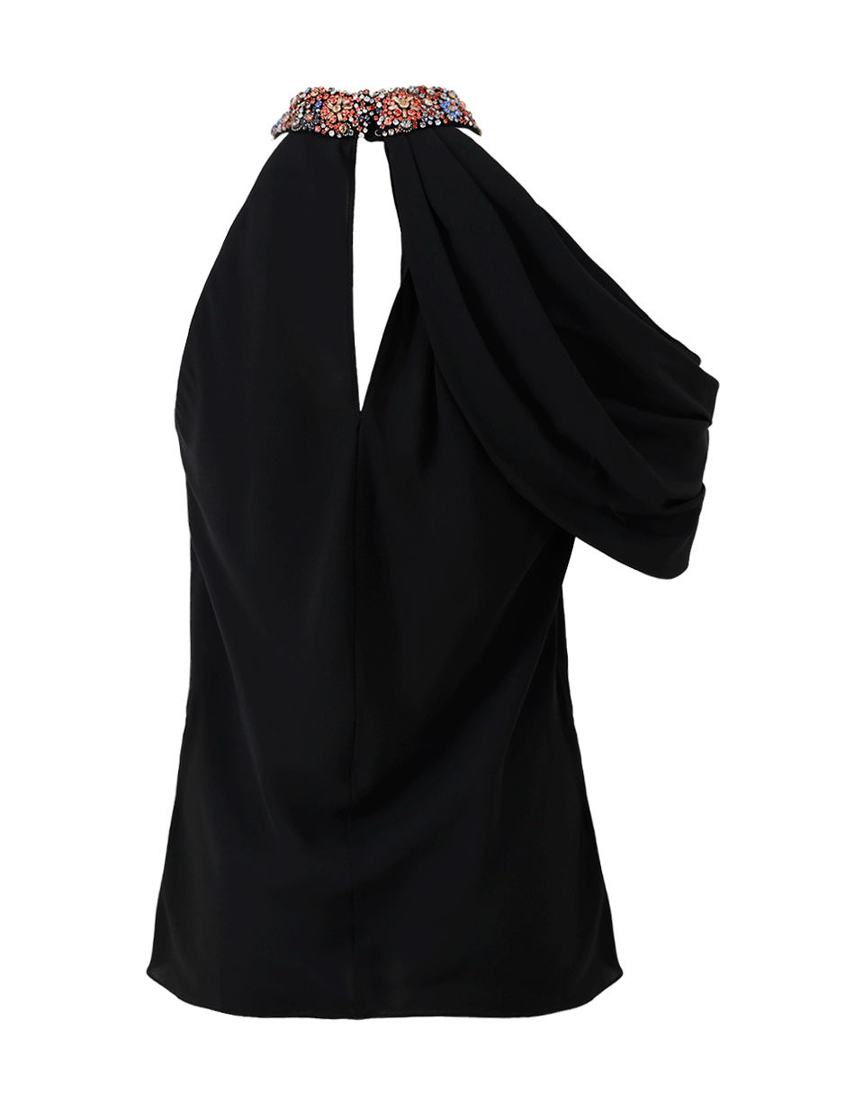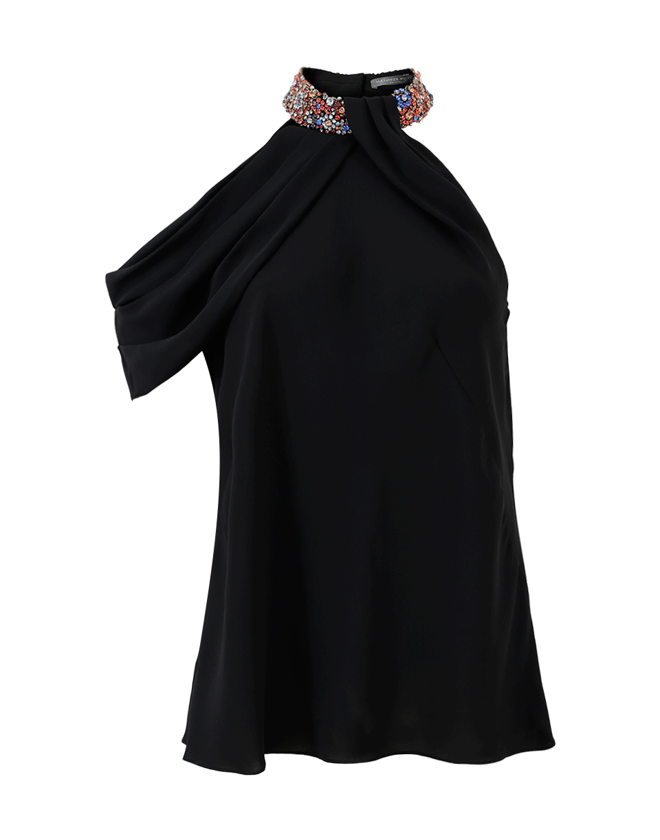 One Draped Cold Shoulder Sleeve With Slim Fitting Silhouette And Classic Cut