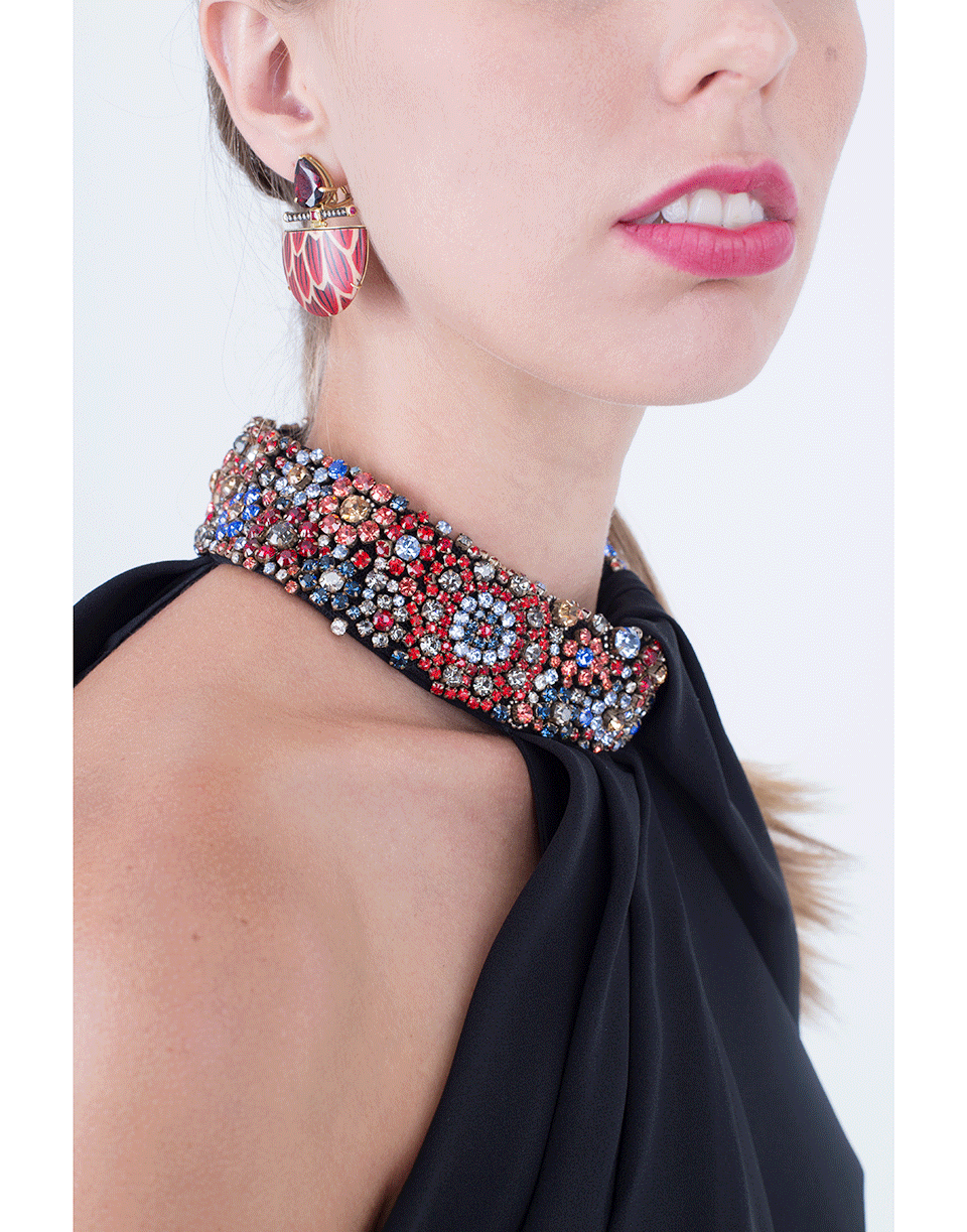 Jeweled Turtle Neckline With Back Keyhole And Hook Closures