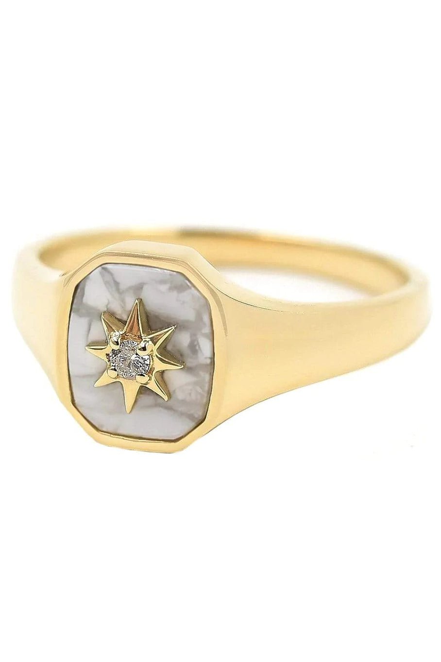 Bondeye Jewelry Josie signet ring with howlite inlay and white diamond accent.