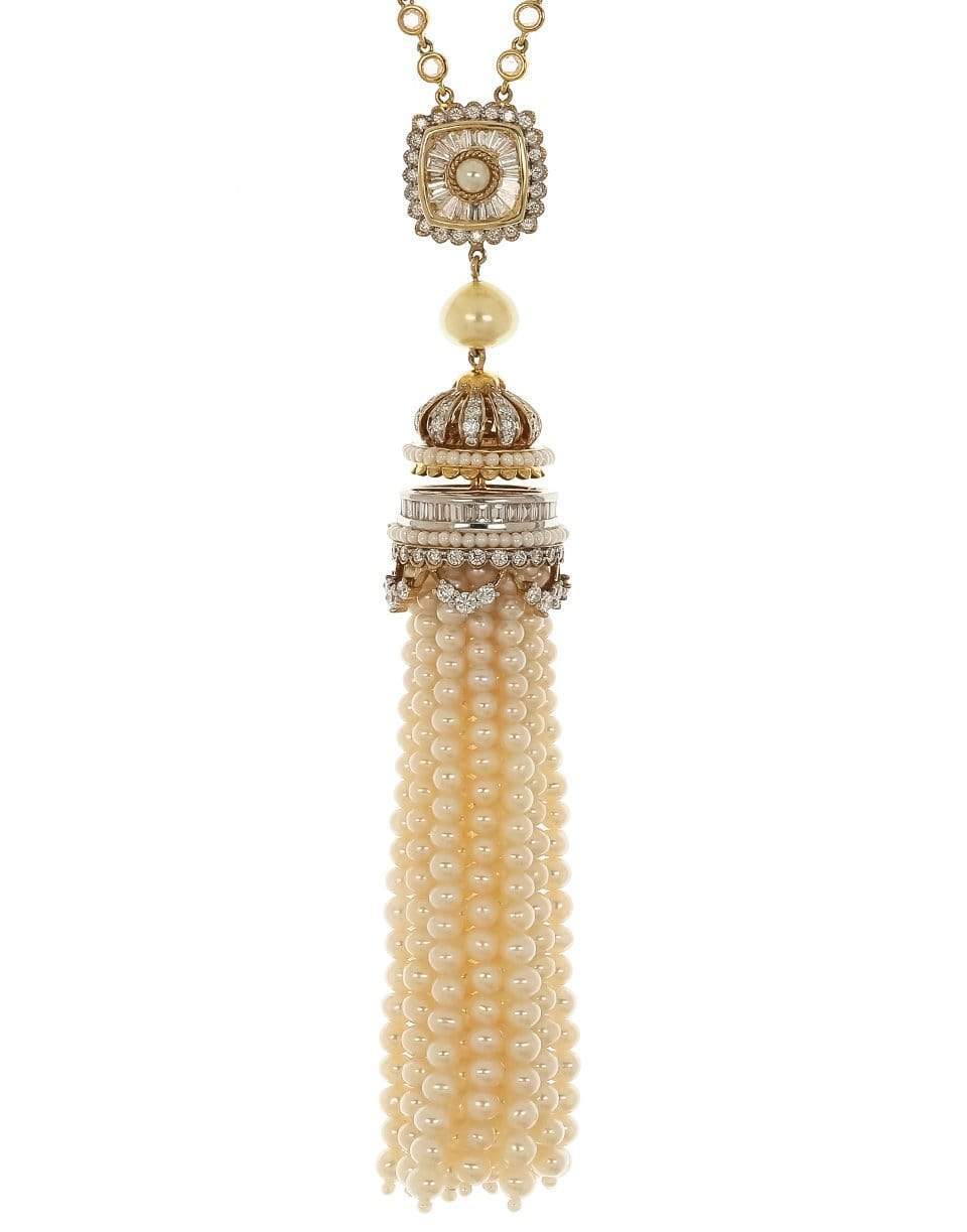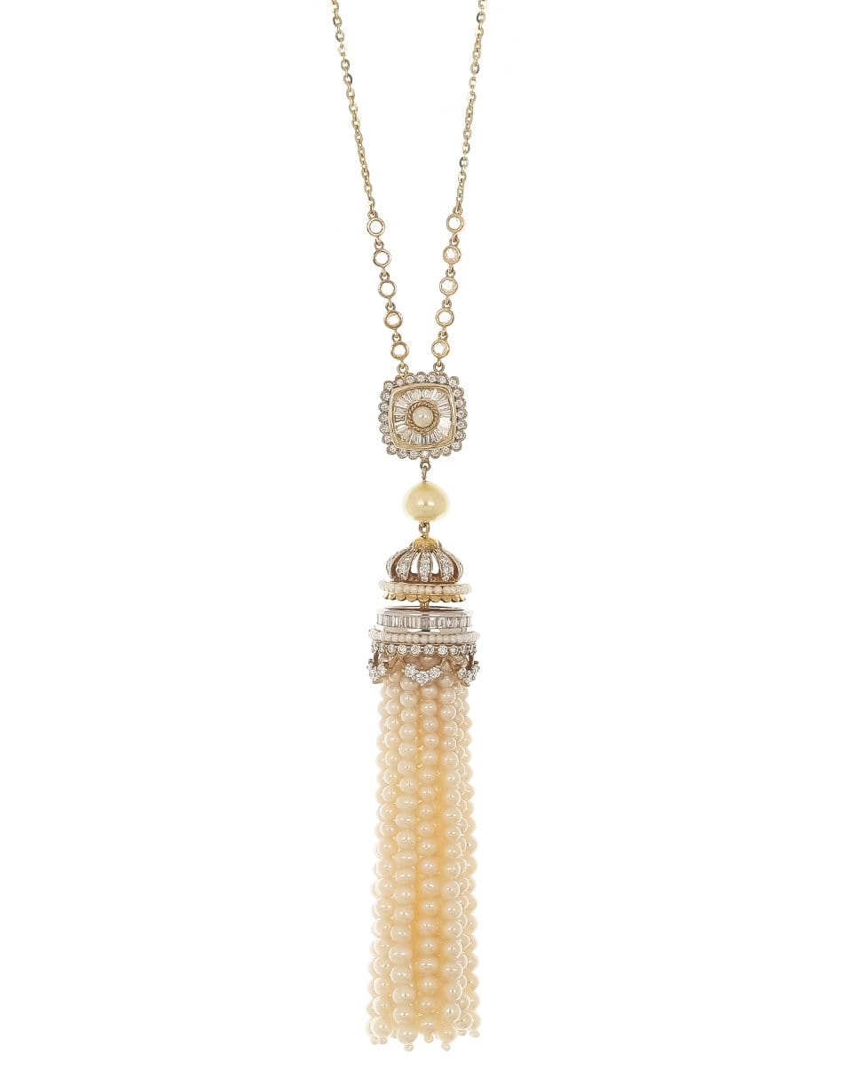 Jumkhi Pearls (58.98ctw) Golden Pearls (3.12ctw) Japanese Keshi Pearls (0.92ctw) Diamonds (2.46ctw)
