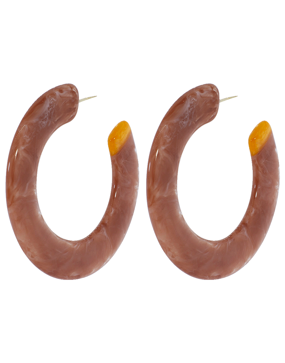 These Cult Gaia feature an acrylic hoop style with a gold detail at the end of the earring and gold-plated sterling silver backings. For pierced ears.