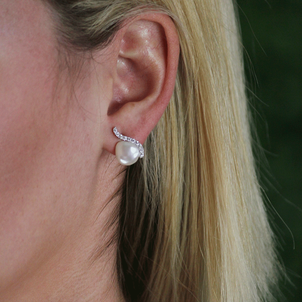Keshi Pearl Stud Earrings With Diamond Pave From Yvel