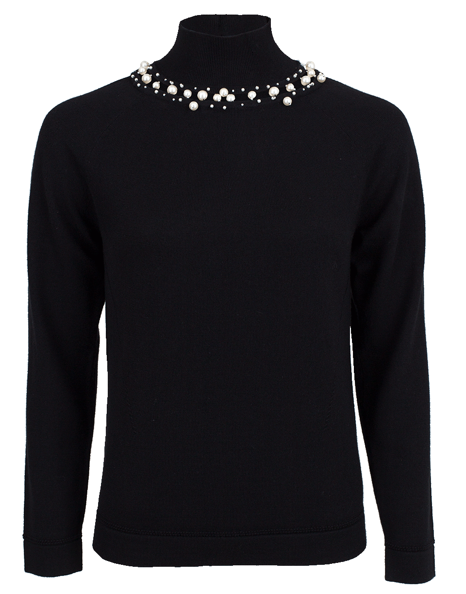 Pearl Neck Trim With Slim Fitting Silhouette And Classic Cut
