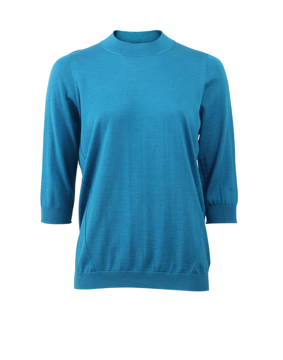 Mock Turtleneck With Ribbing Detail At Neck And Cuffs And Three-Quarter Sleeve