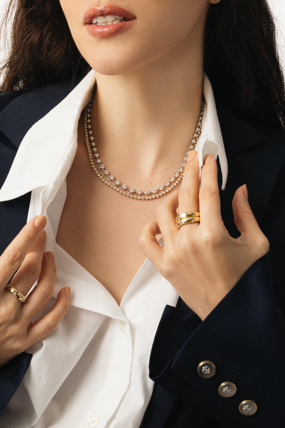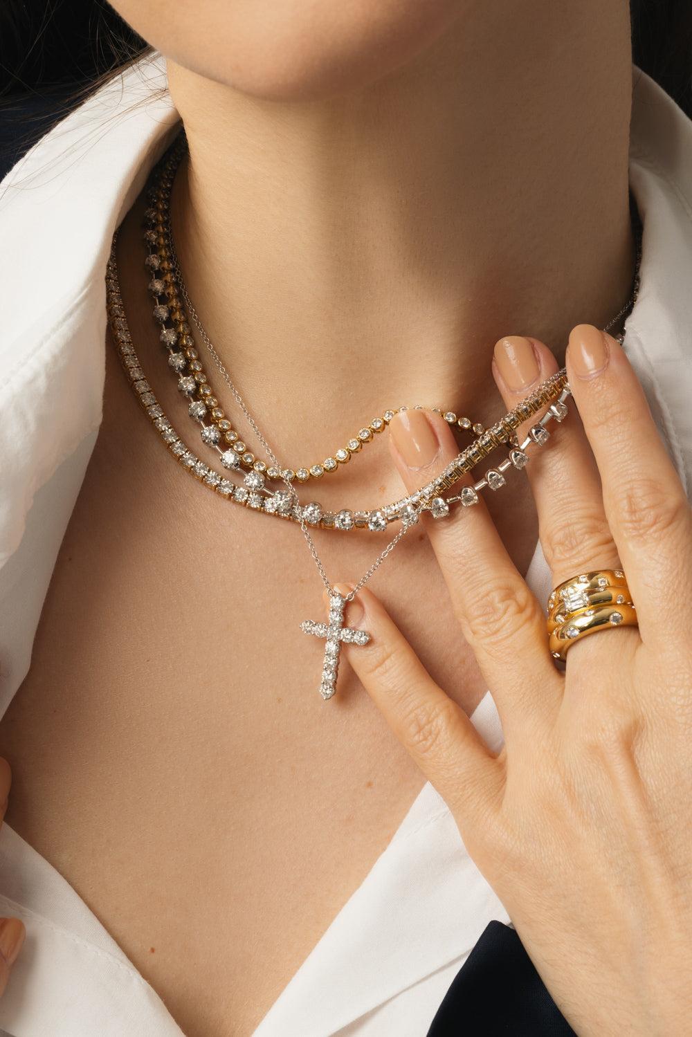 Kwiat sunburst diamond line necklace in yellow gold.