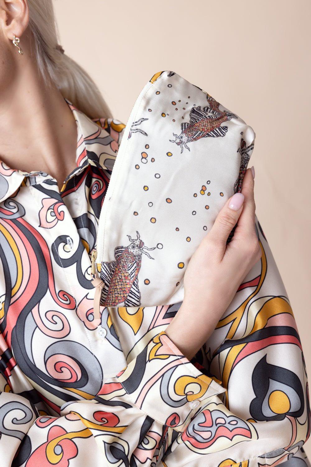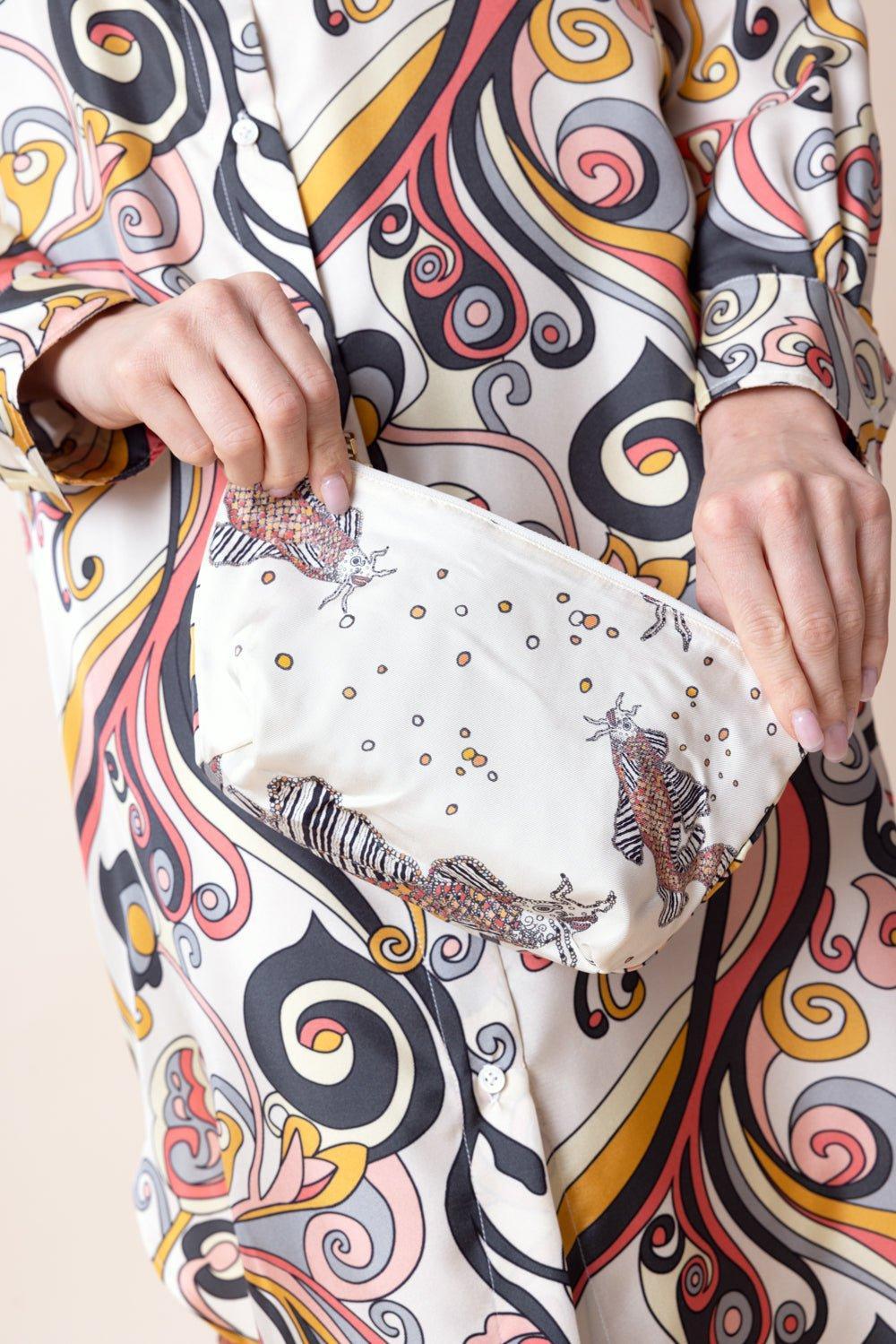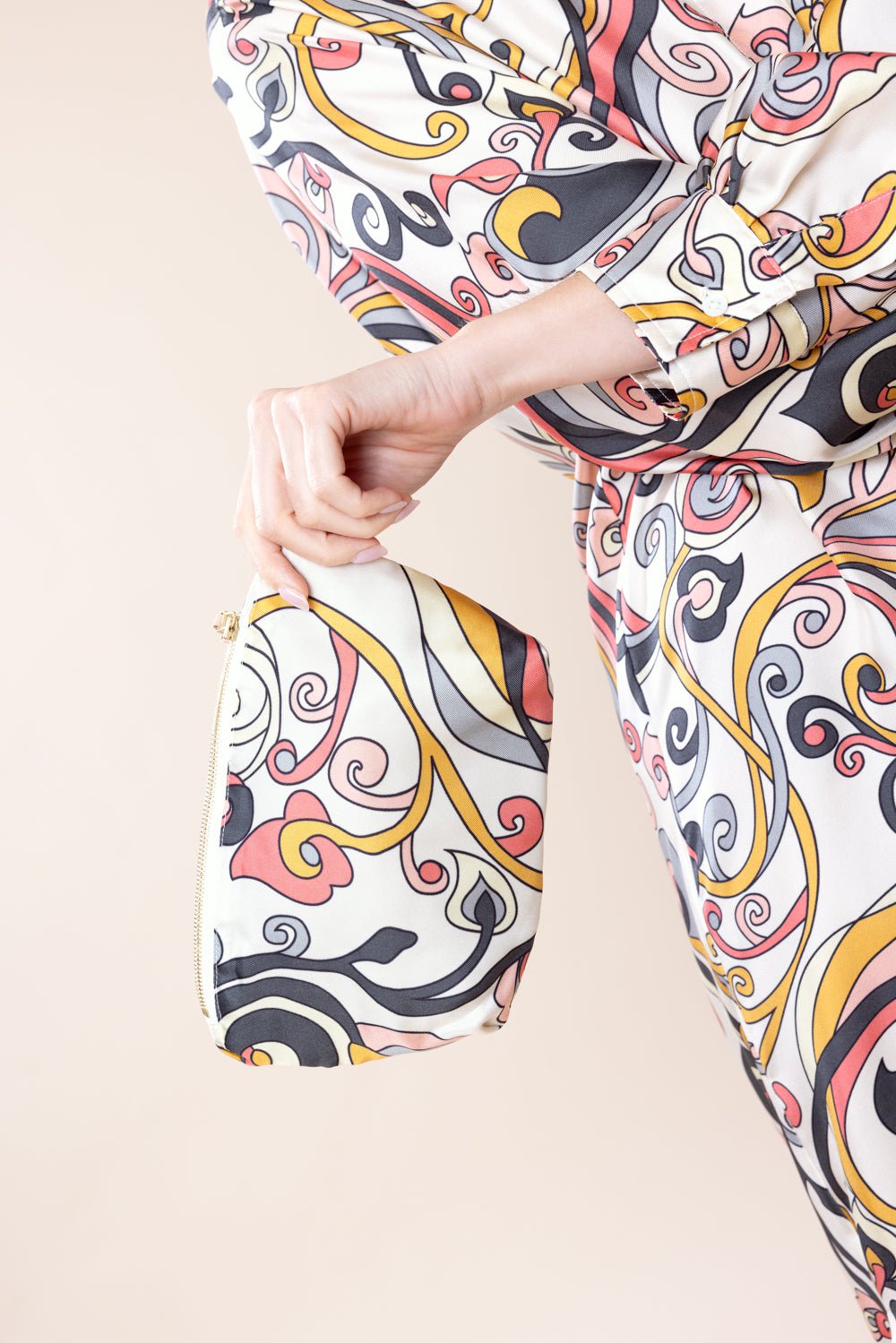 La Prestic Ouiston makeup pouch in mix arabesques rose.