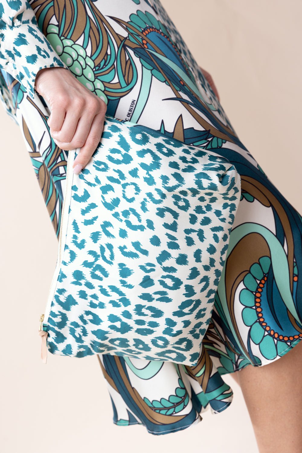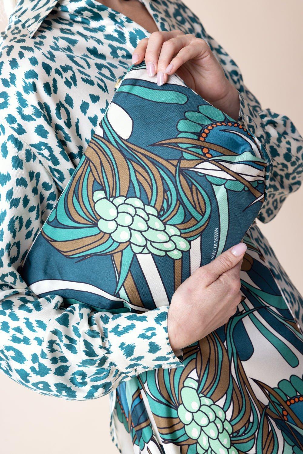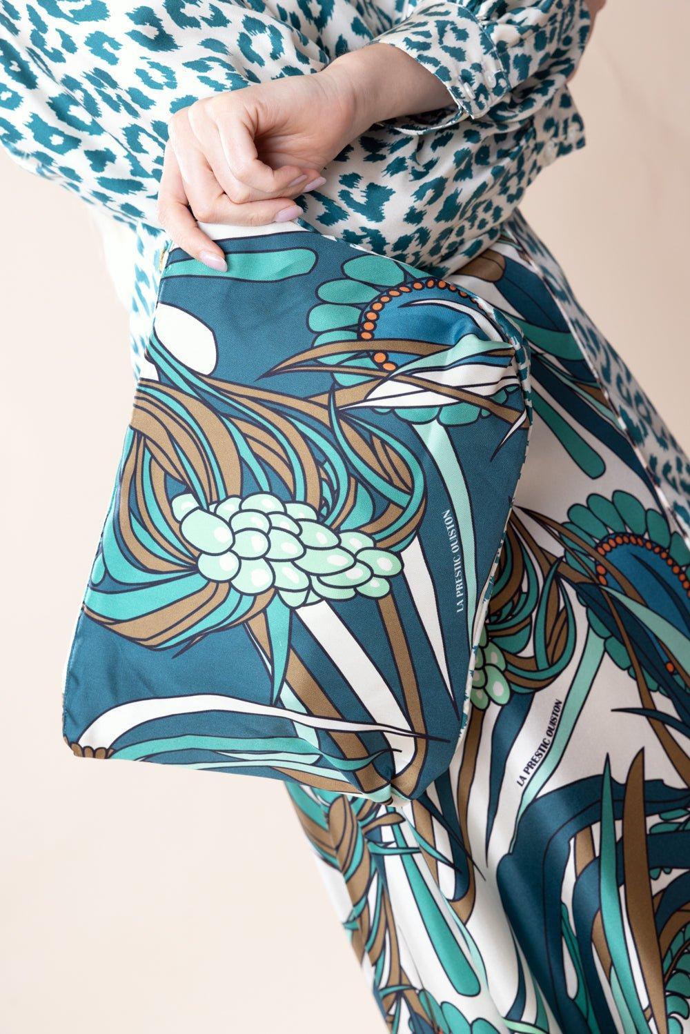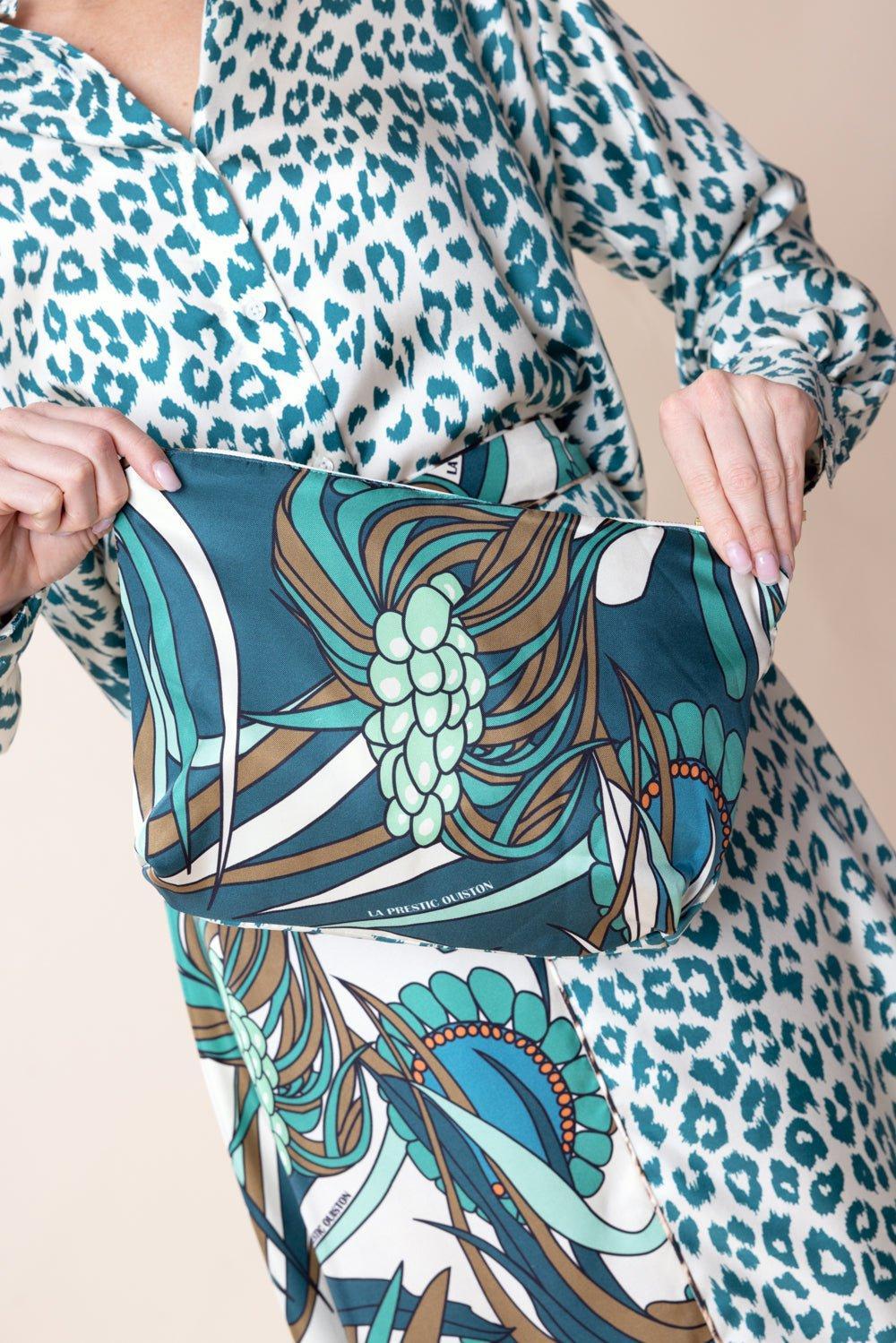 La Prestic Ouiston voleuse pouch in mix corail aqua vert.