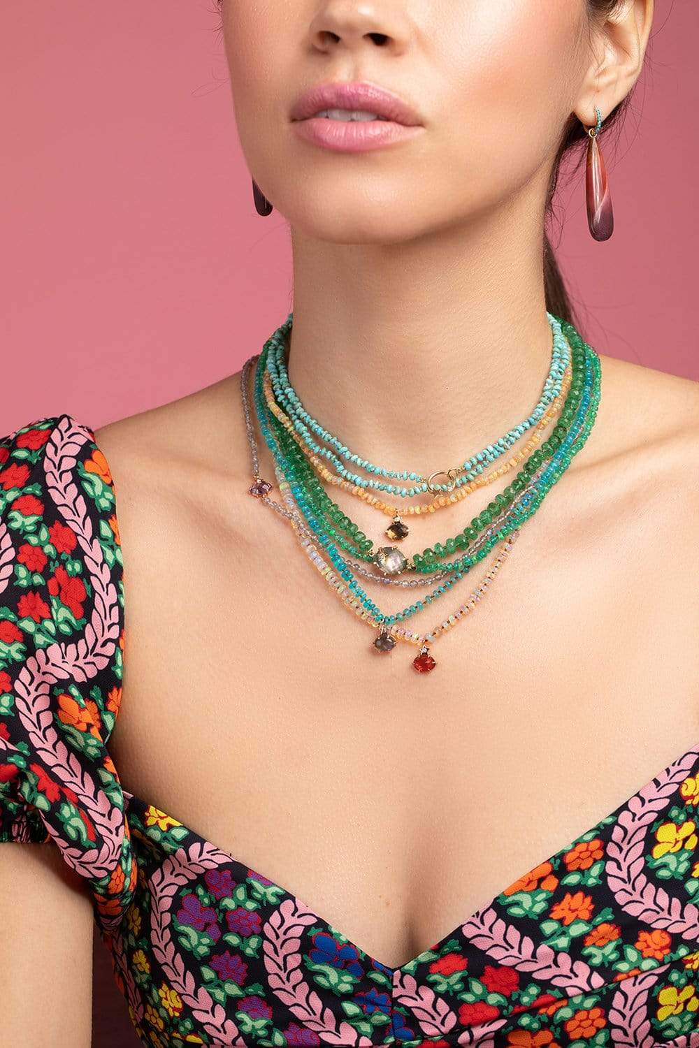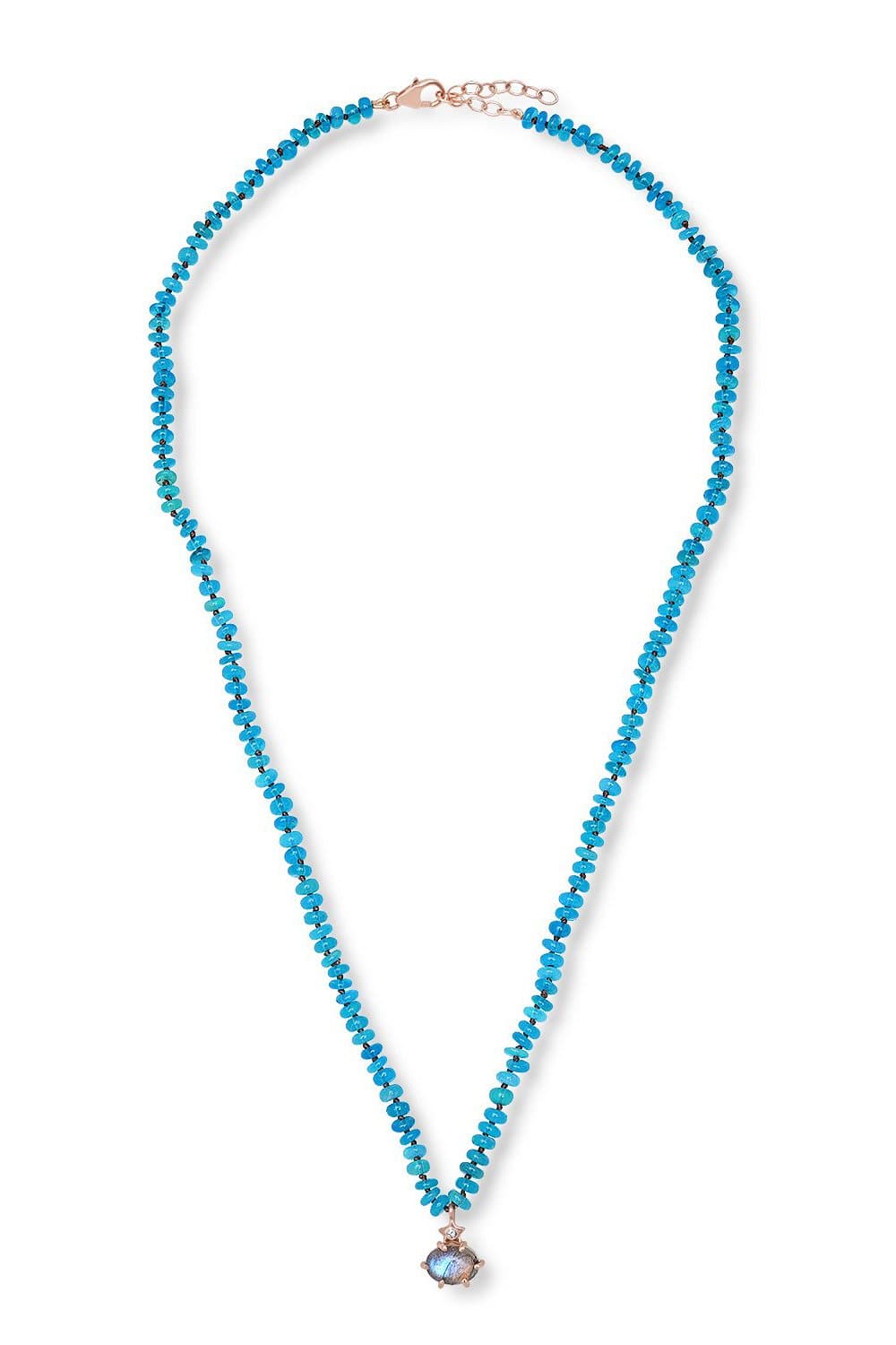 Andrea Fohrman teal ethiopian opal beaded knotted necklace with labradorite charm.