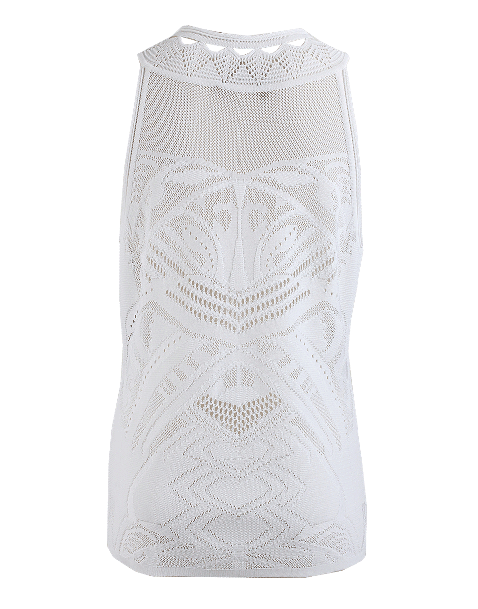 Show off those bronzed shoulders and arms with this crocheted tank by Roberto Cavalli. Featuring a symmetrical pattern that mirrors on either side, you will automatically be turning heads.