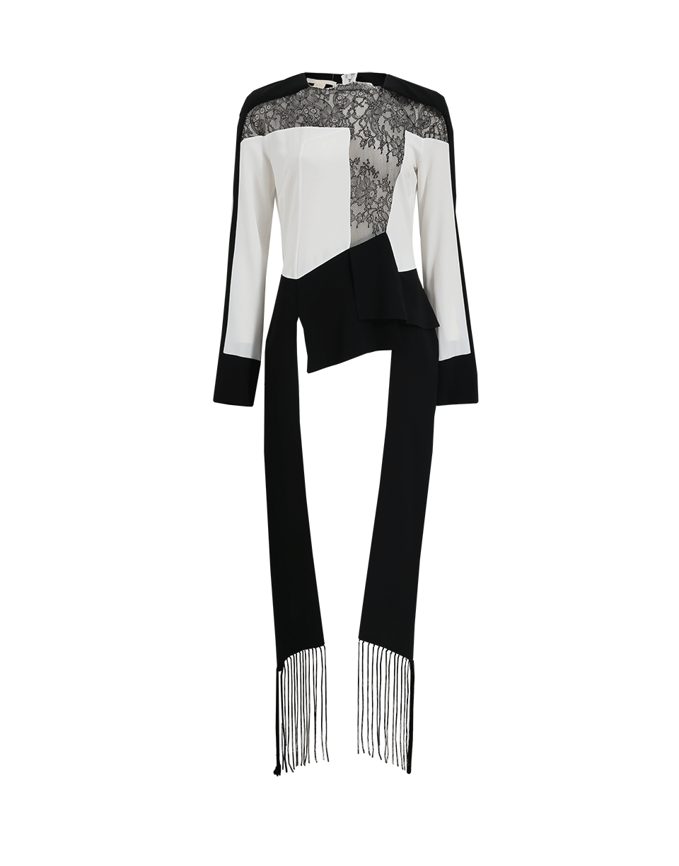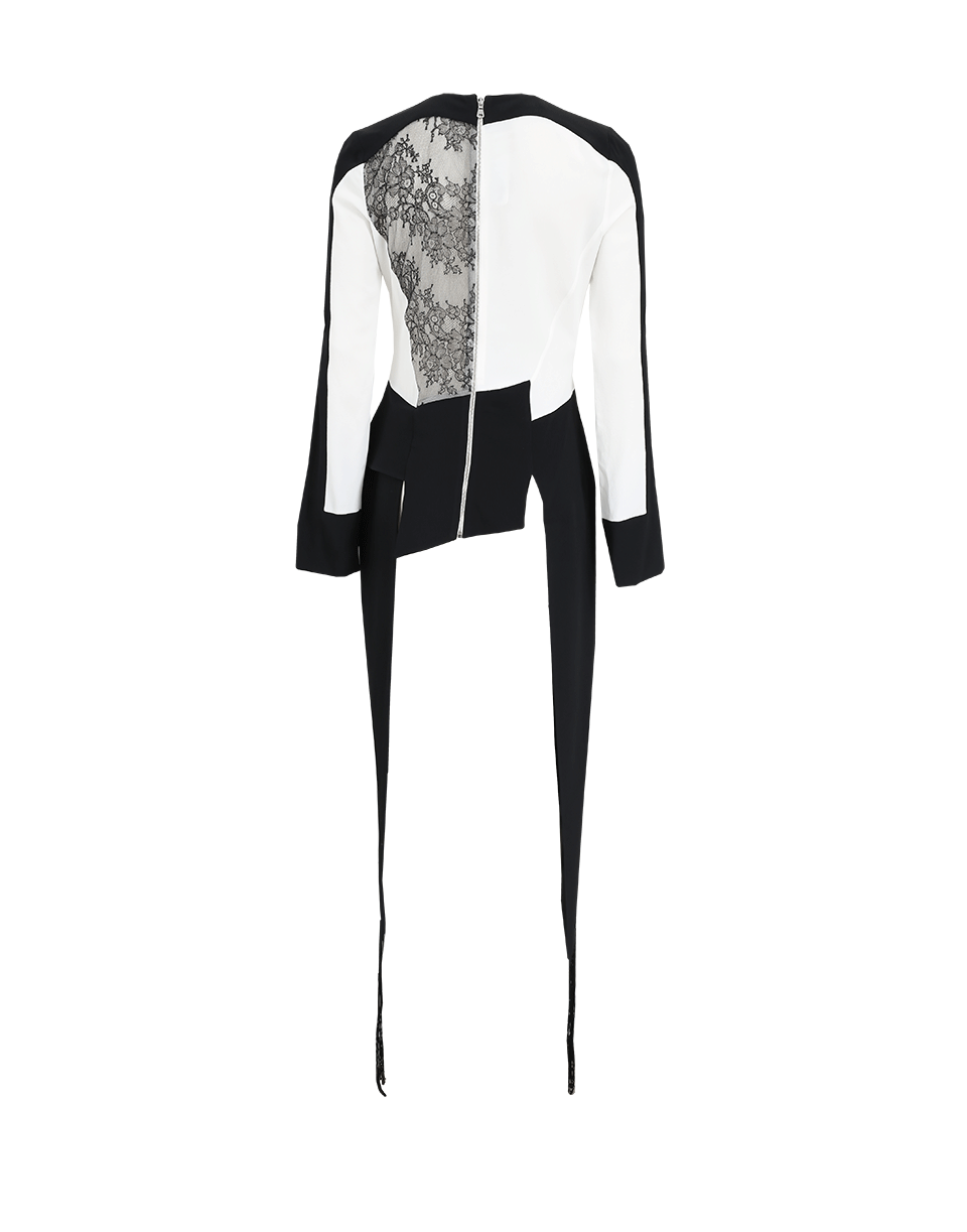 Crew Neckline With Full Exposed Back Zip Closure And Long Sleeves