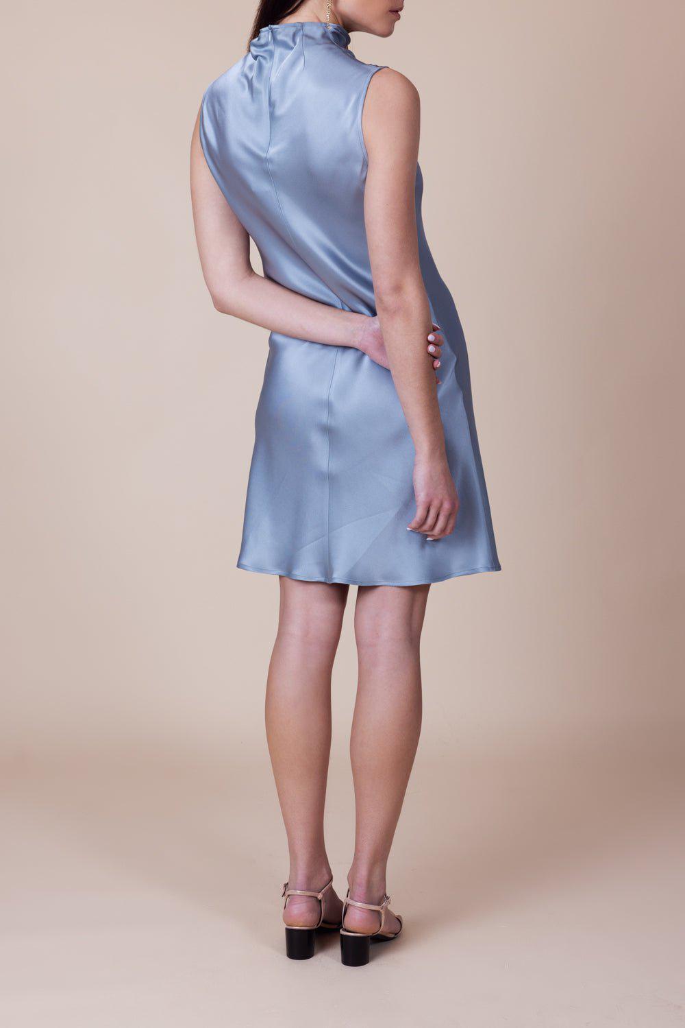 Lapointe doubleface bias mini dress in dove.