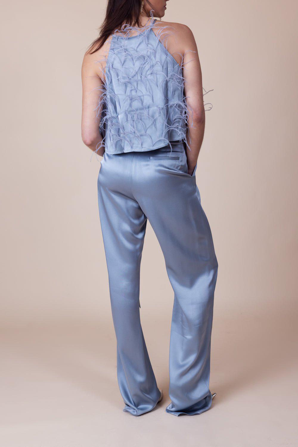Lapointe embellished crop halter cami in dove.
