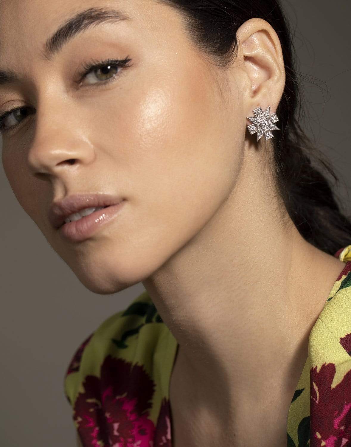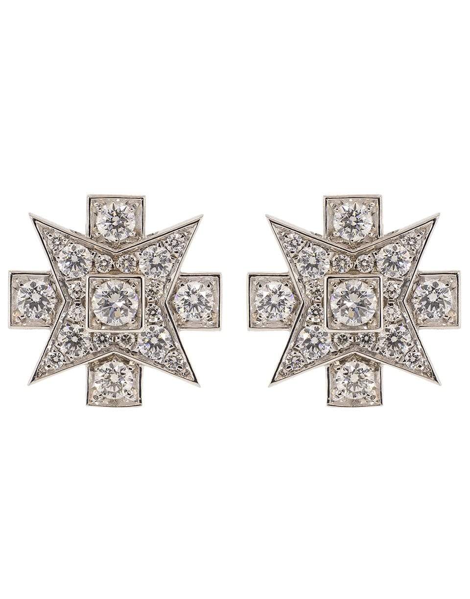 Mariani large Maltese diamond earrings set in 18k white gold. For pierced ears.