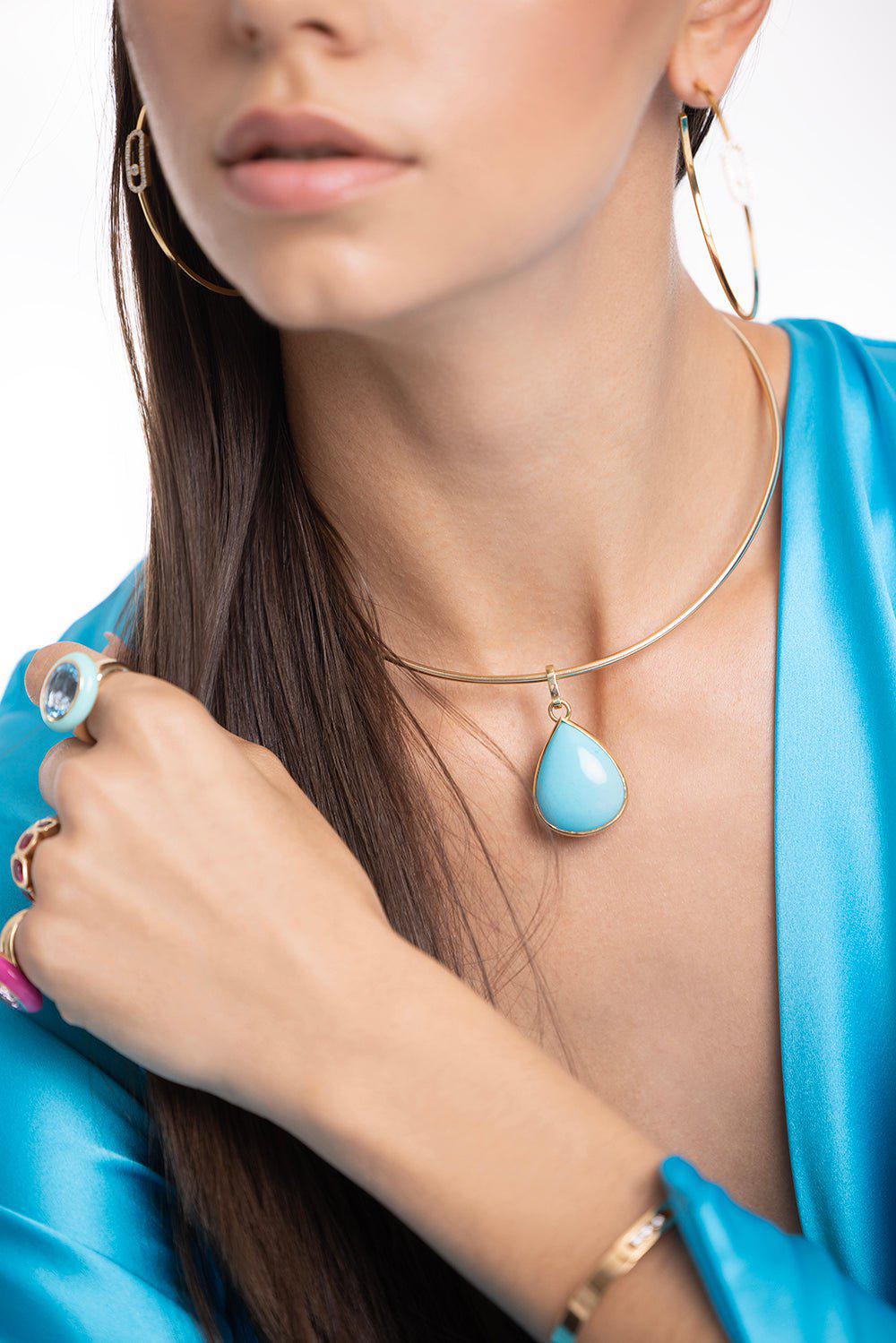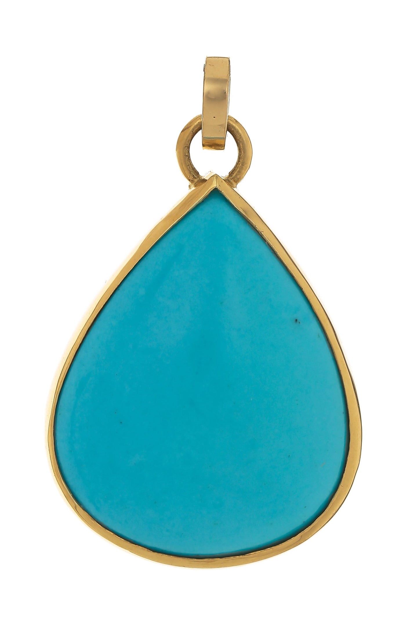 Robinson Pelham large pearshape turquoise pendant in yellow gold.