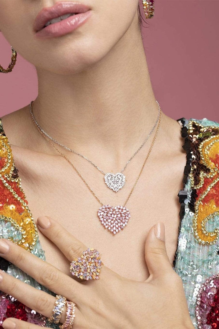 Suzanne Kalan large pink sapphire heart necklace.