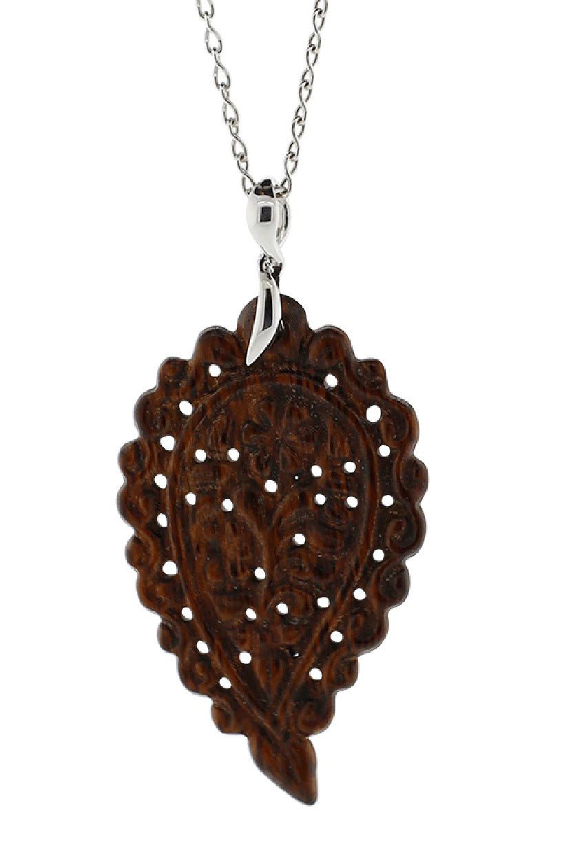 Tamara Comolli Large Snakewood India Pendant with hand carved detail on one side.