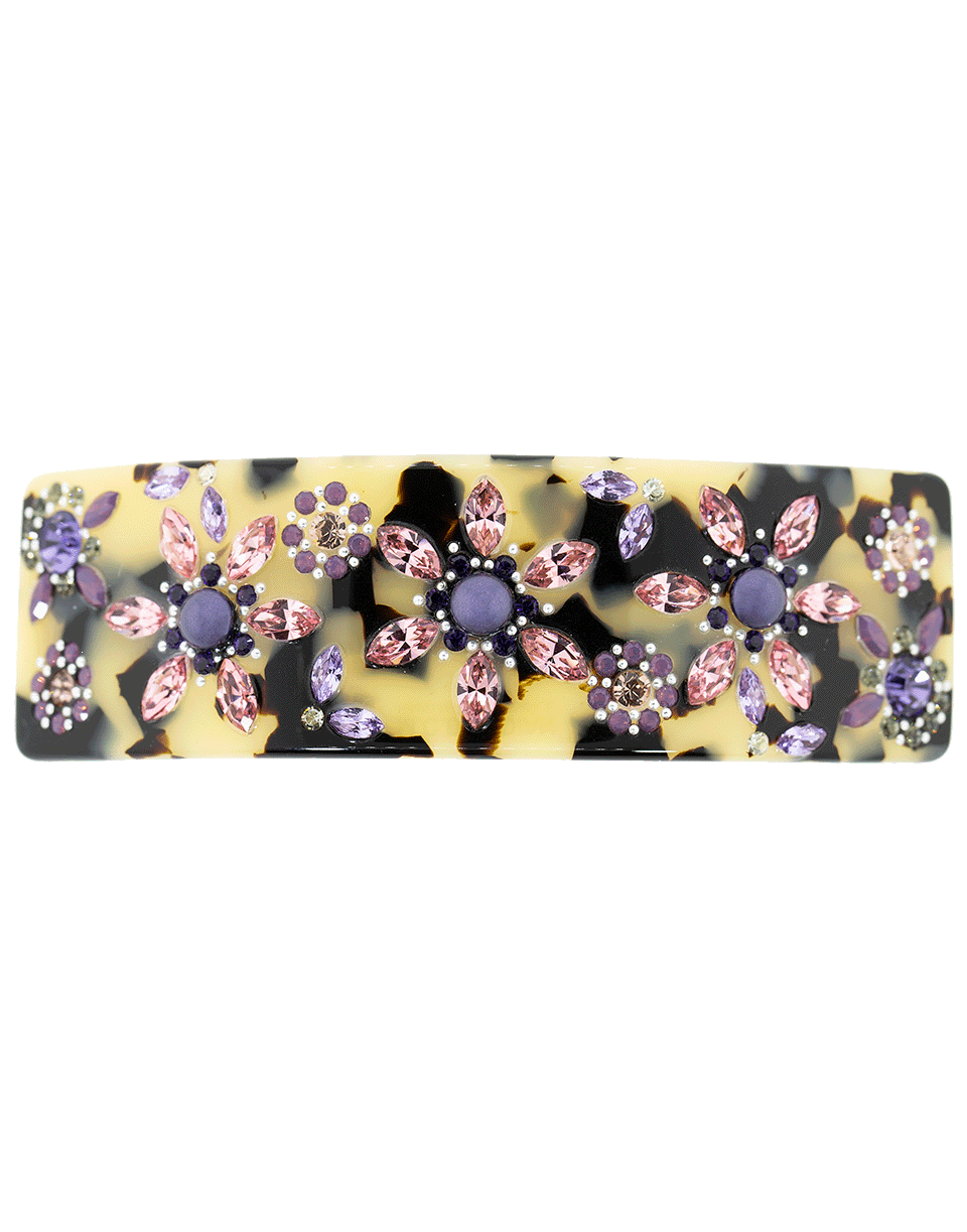 This French crafted hair barrette from M.C Davidian is the perfect accessory to help achieve an effortless 'je ne sais quoi' look. It features a wide silhouette adorned with floral Swarovski crystals and a goldtone clasp.