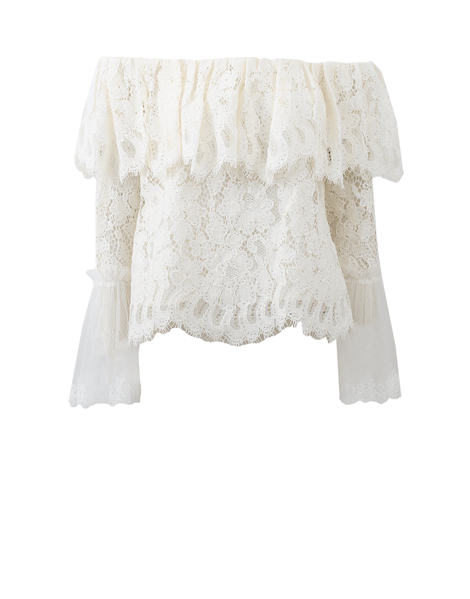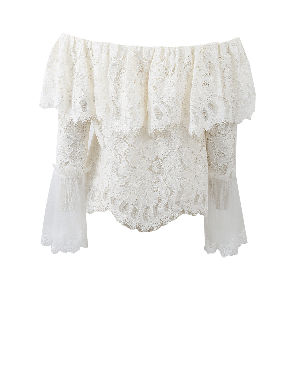 Lace Off Shoulder Neckline With Long Bell Sleeves