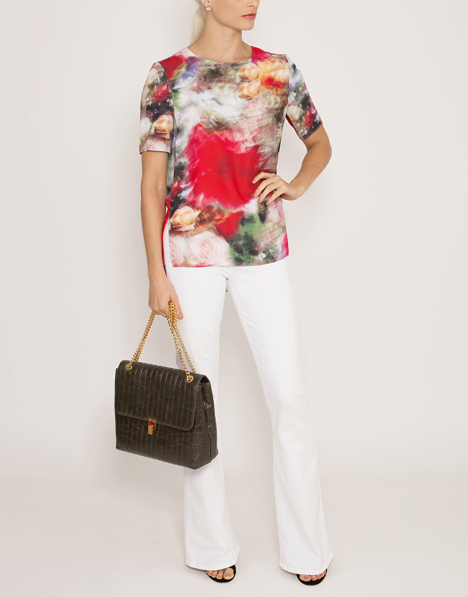 High Waisted Flare Jeans by Frame Denim. These 70’s inspired jeans feature a high rise waist, a slim fit, flared out bottom, and a button and concealed zip closure at front.