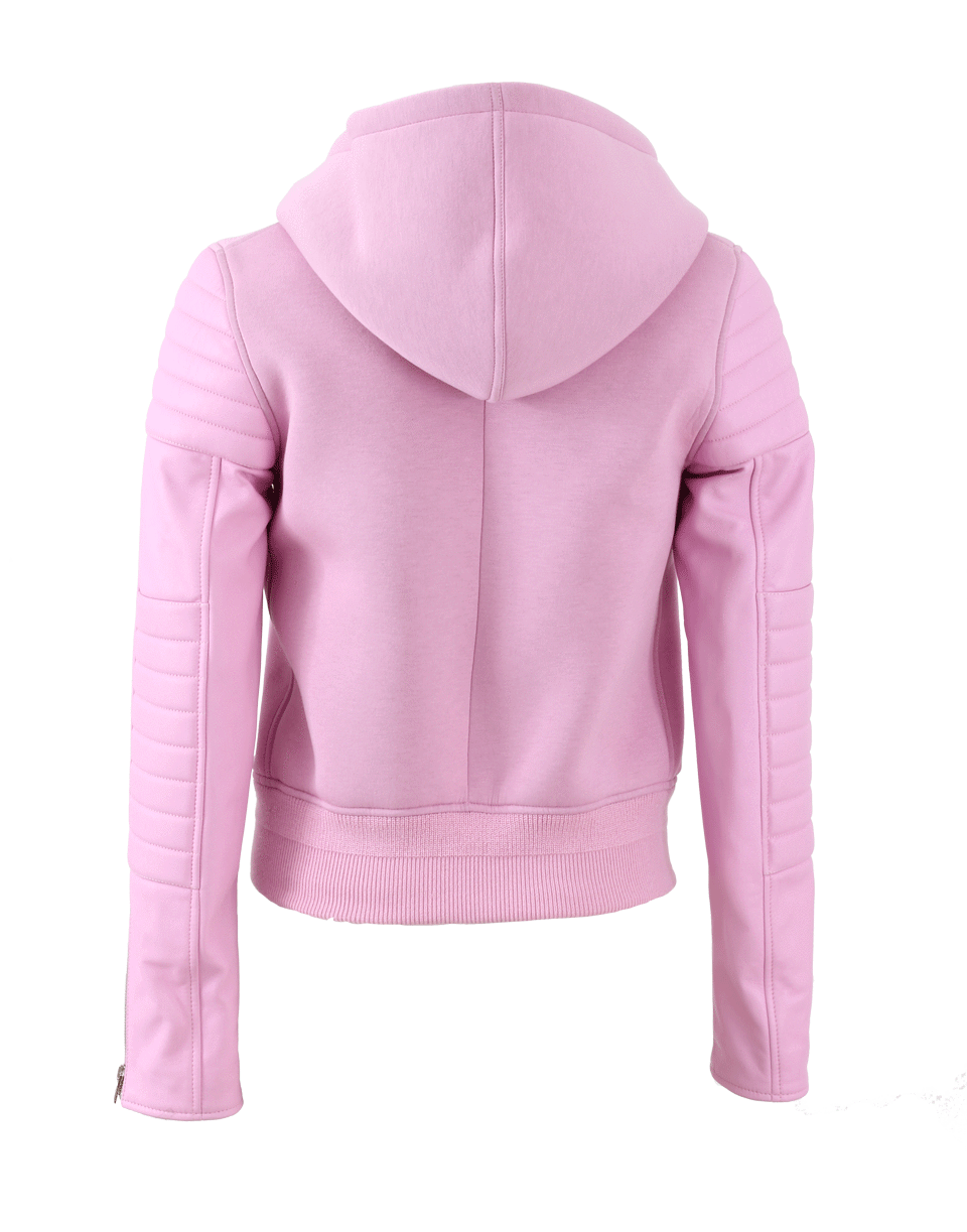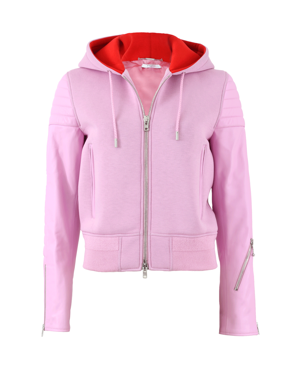 Hooded Neckline With Double Front Zip Closure And Long Leather Sleeves