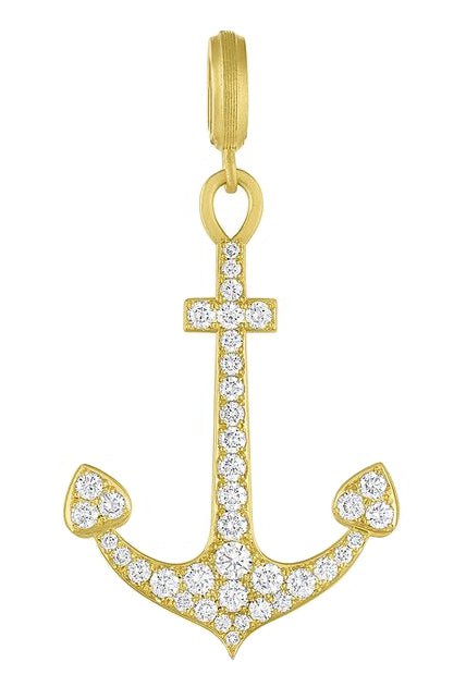 Leigh Maxwell diamond anchor pendant in yellow gold.