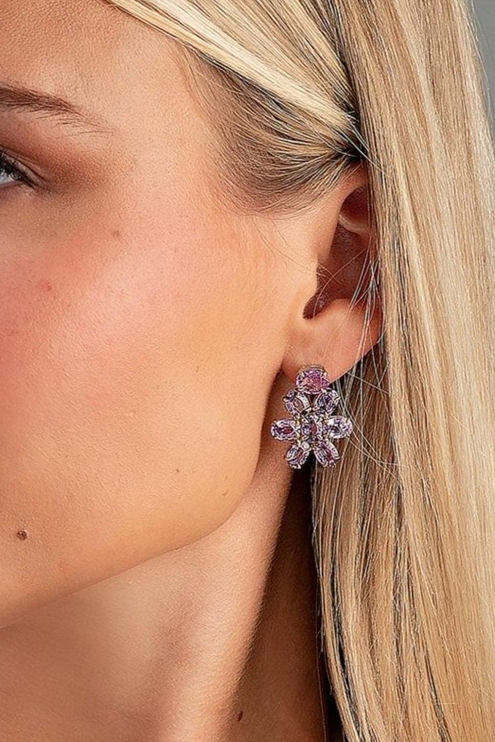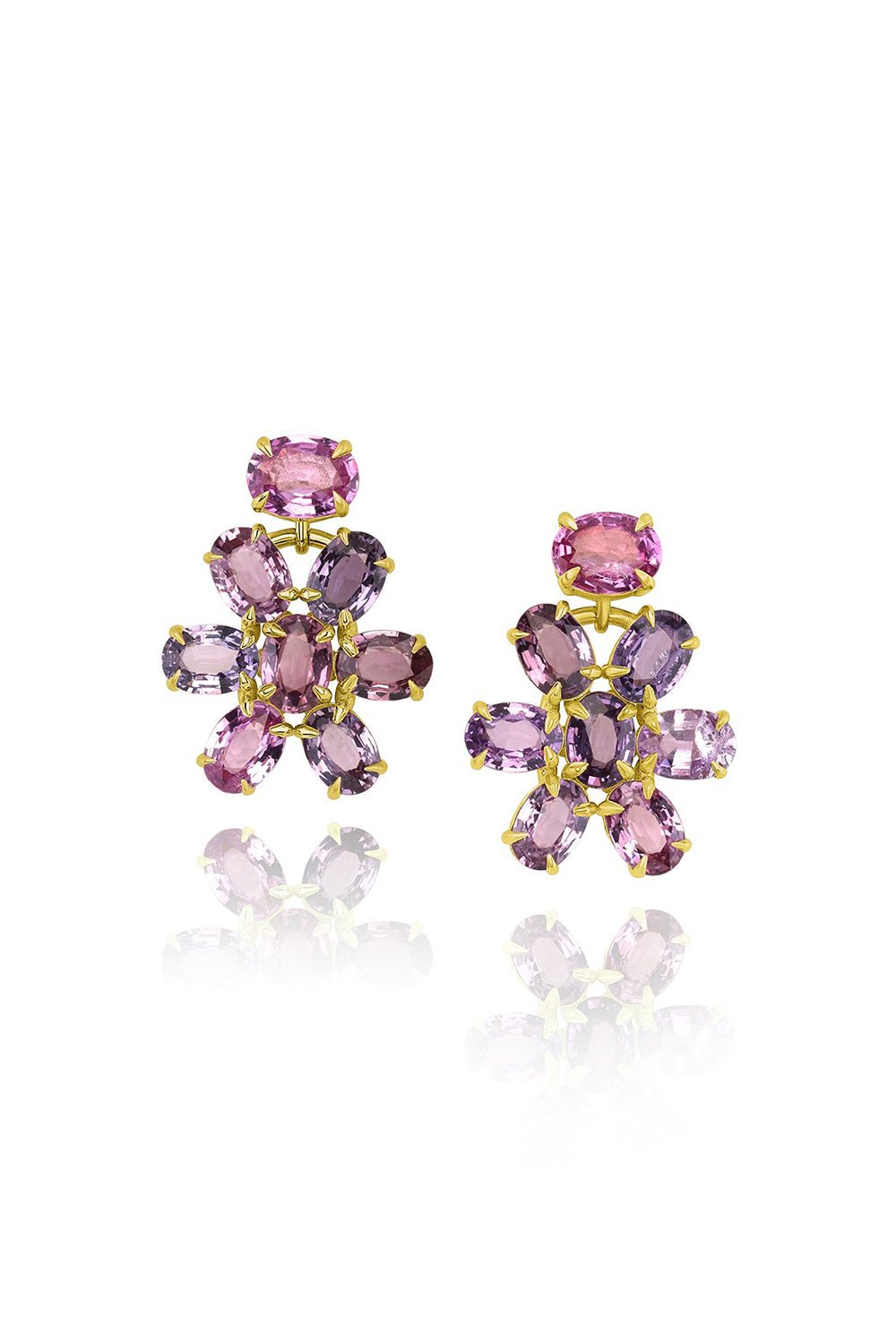 Leigh Maxwell pink sapphire celebration earrings in yellow gold.