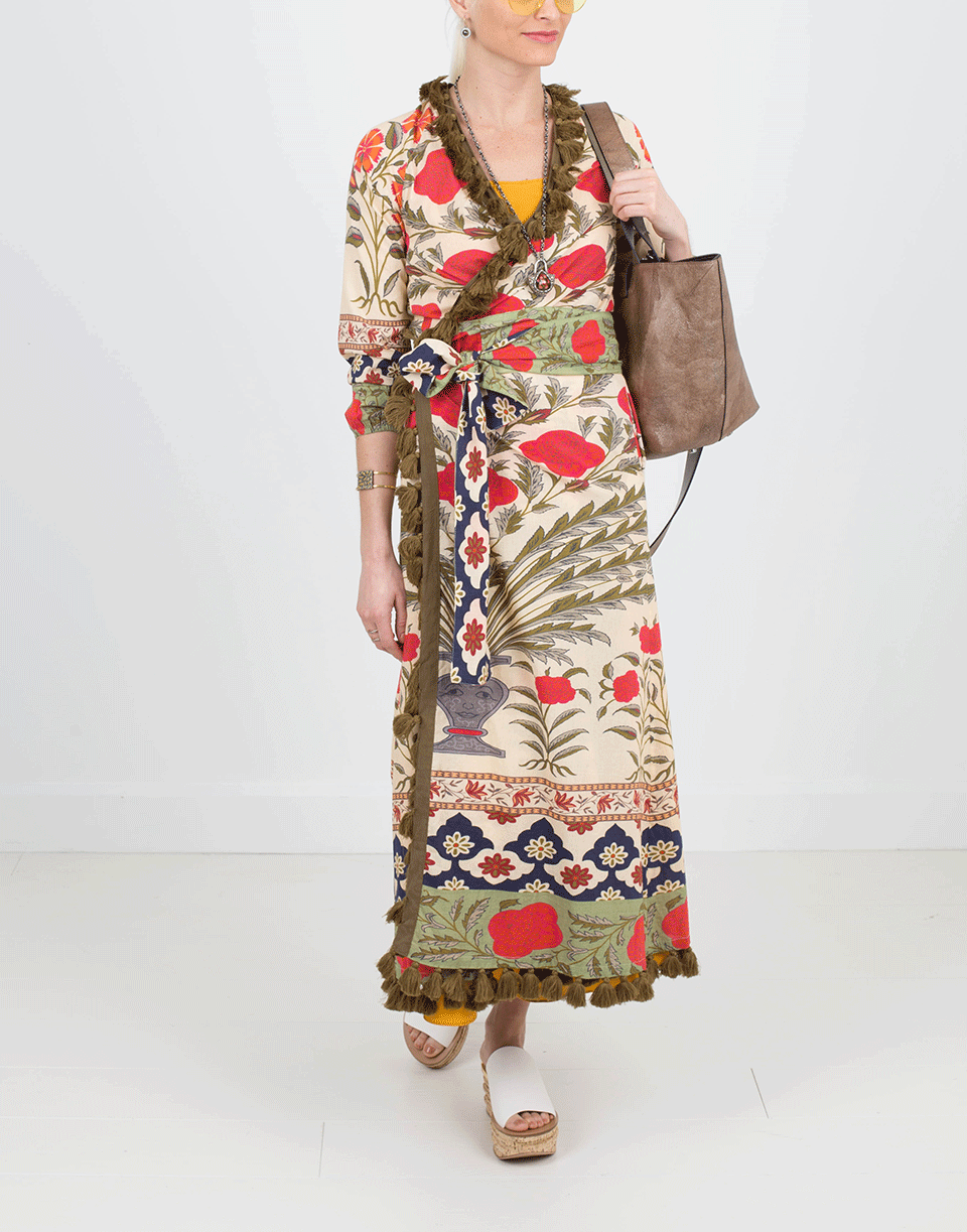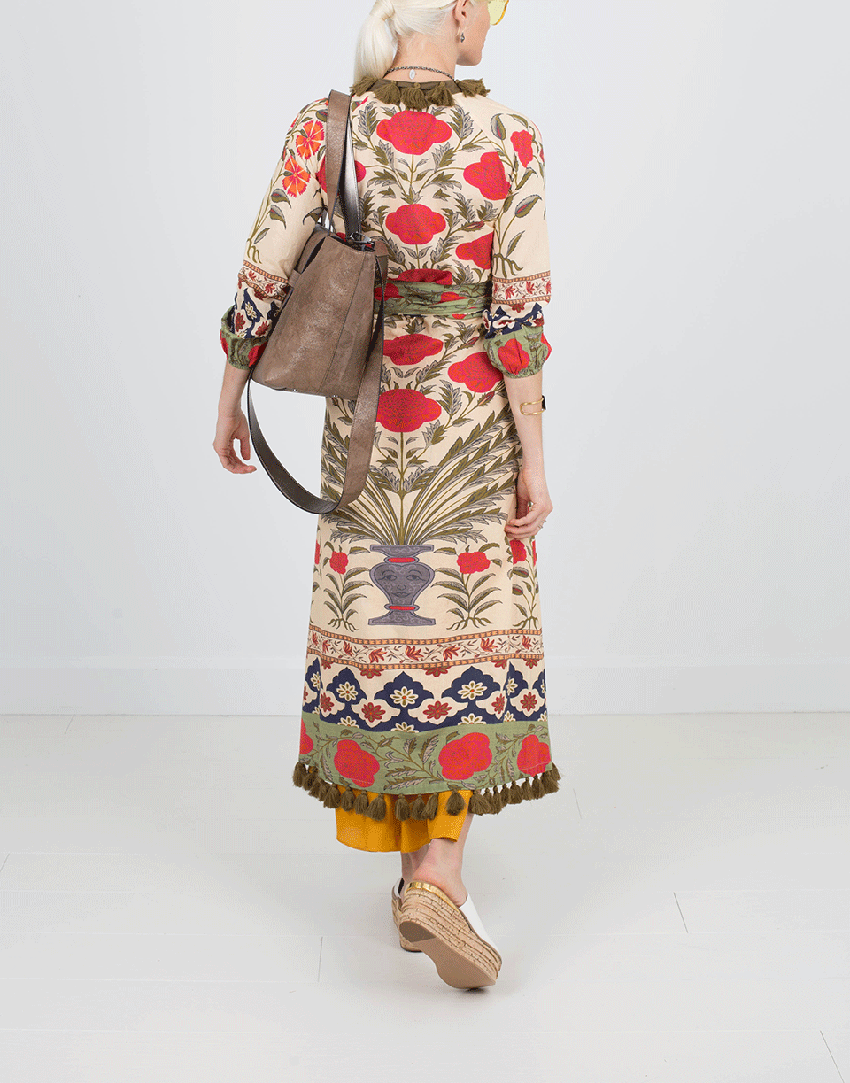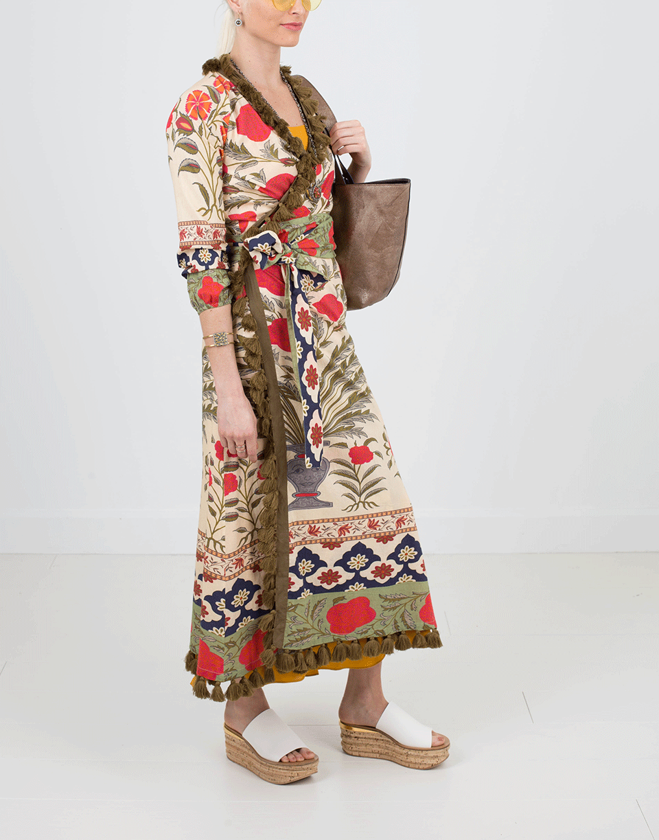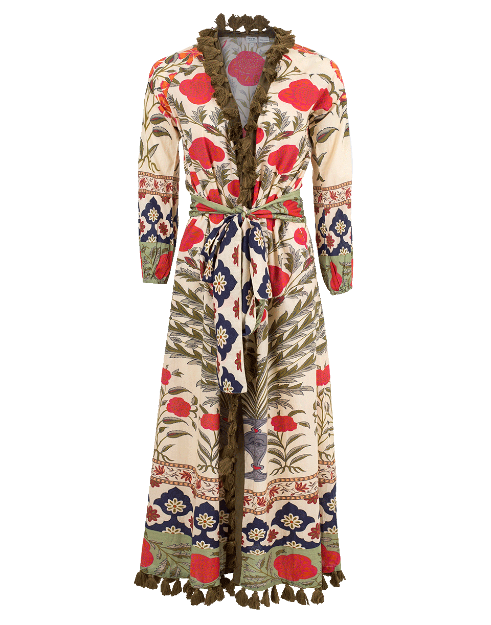 Open Front V-Neckline With Tie Belt And Long Sleeves