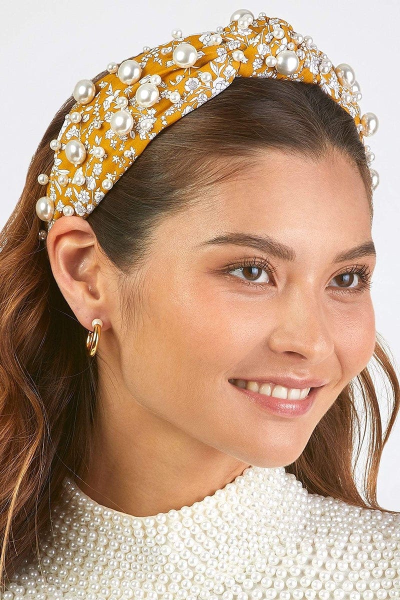 Lele Sadoughi Designs liberty pearl knotted headband in summer.