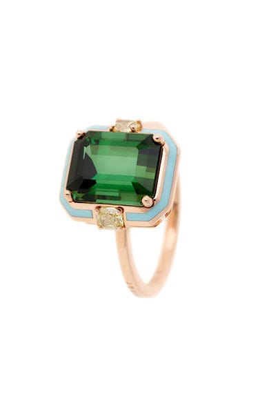 Selim Mouzannar light blue enamel ring set with green tourmaline and diamonds.