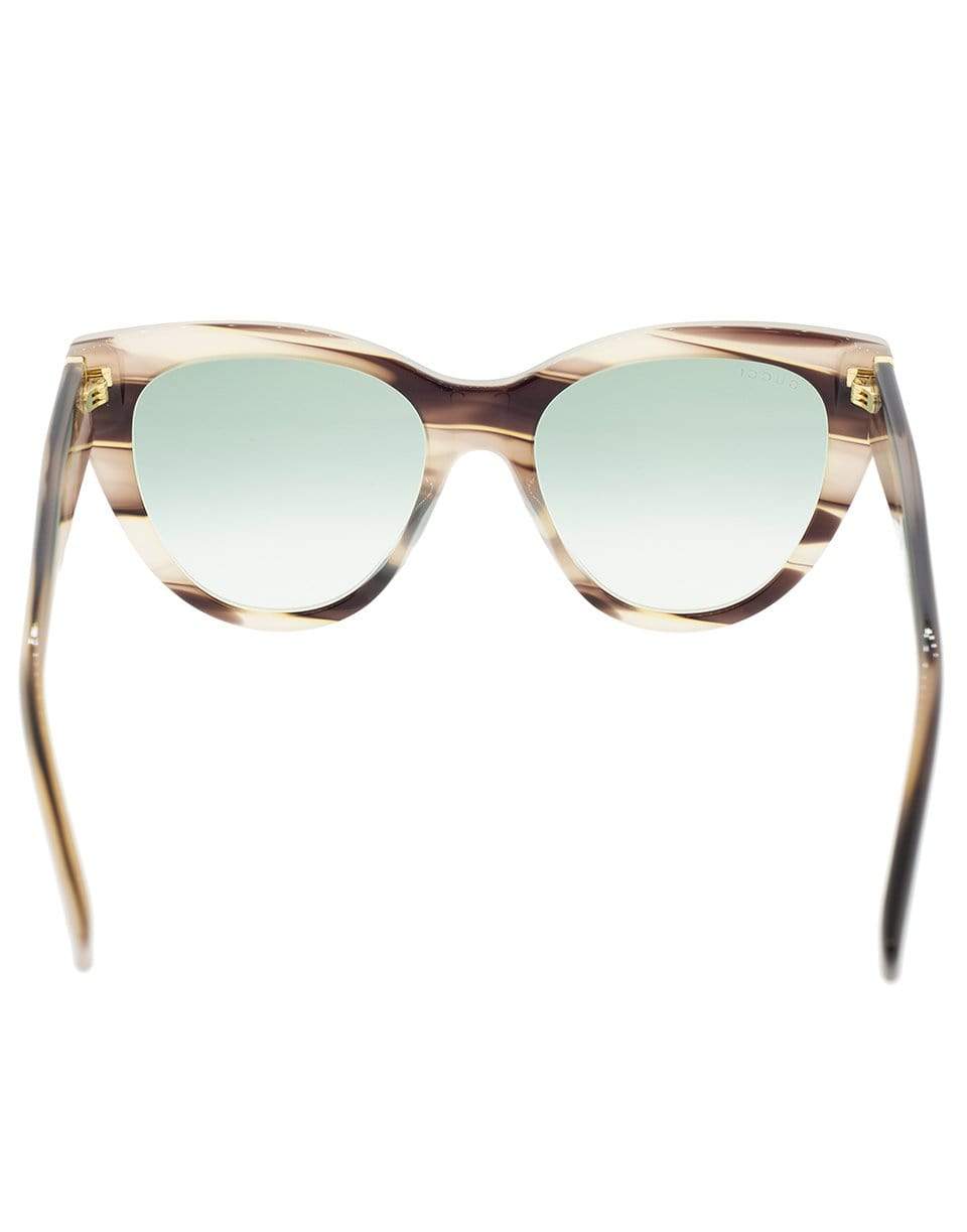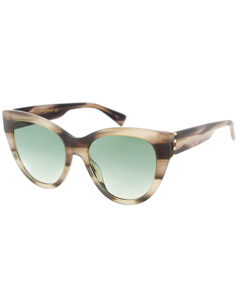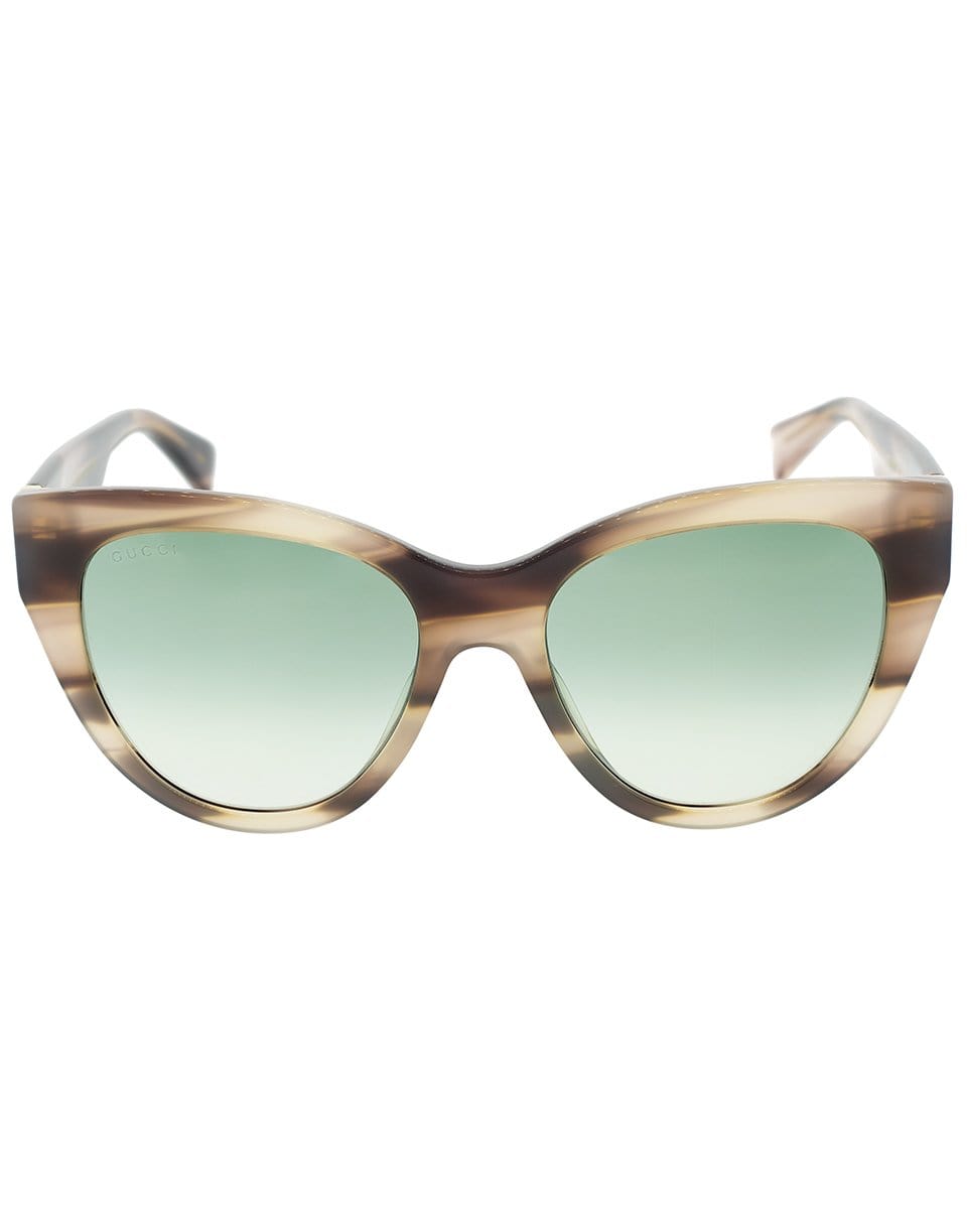 Gucci light brown cat-eye sunglasses with a plastic frame and green gradient lenses.